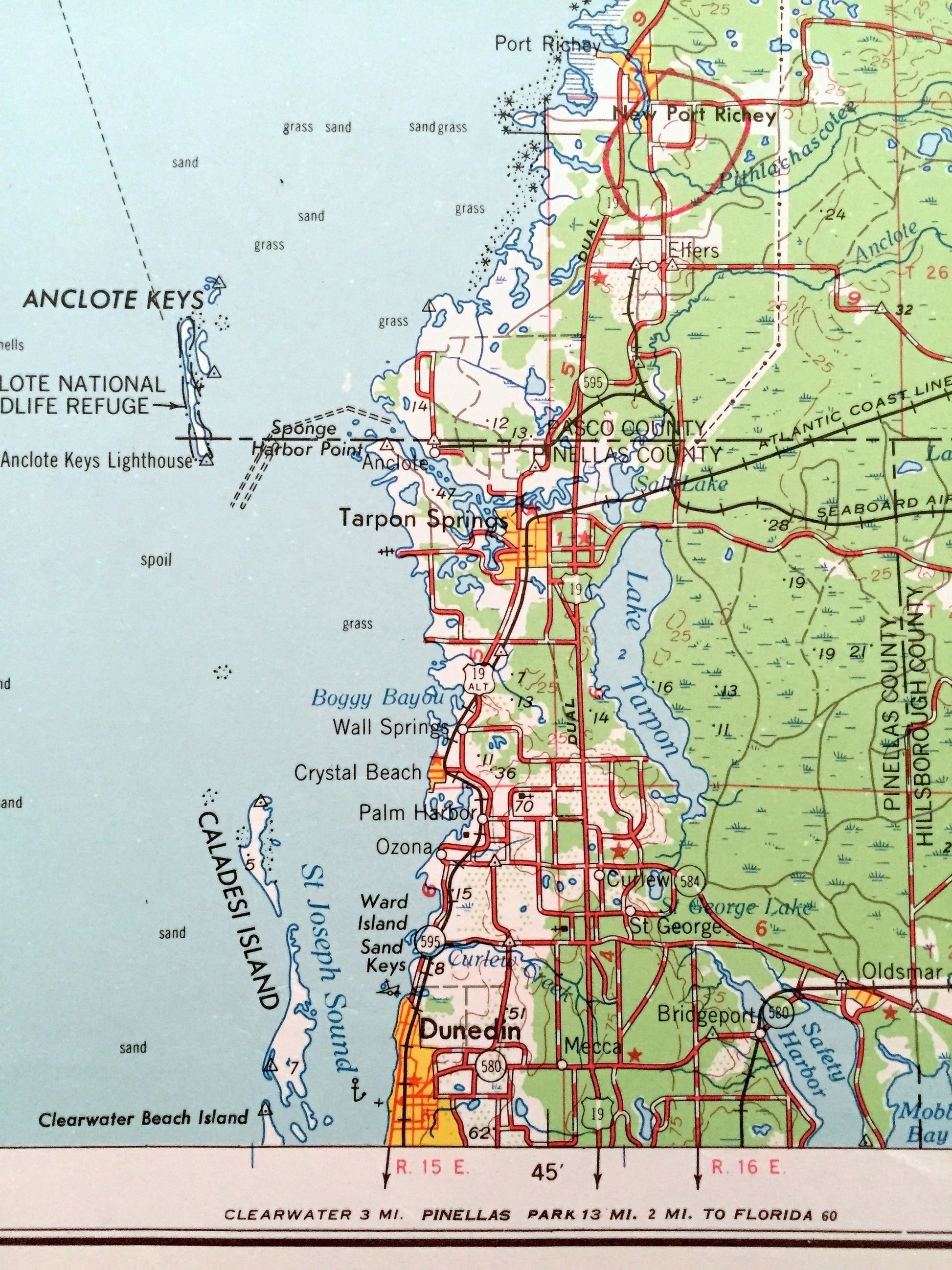 Points of Interest: Gulf Of Mexico, Anclote Keys, Caladesi Island, Anclote National Wildlife Refuge, Chassahowitzka National Wildlife Refuge, Crystal Bay, Lake Tarpon and lots more hills, mountains, lakes, islands, bays, highways, railroads.