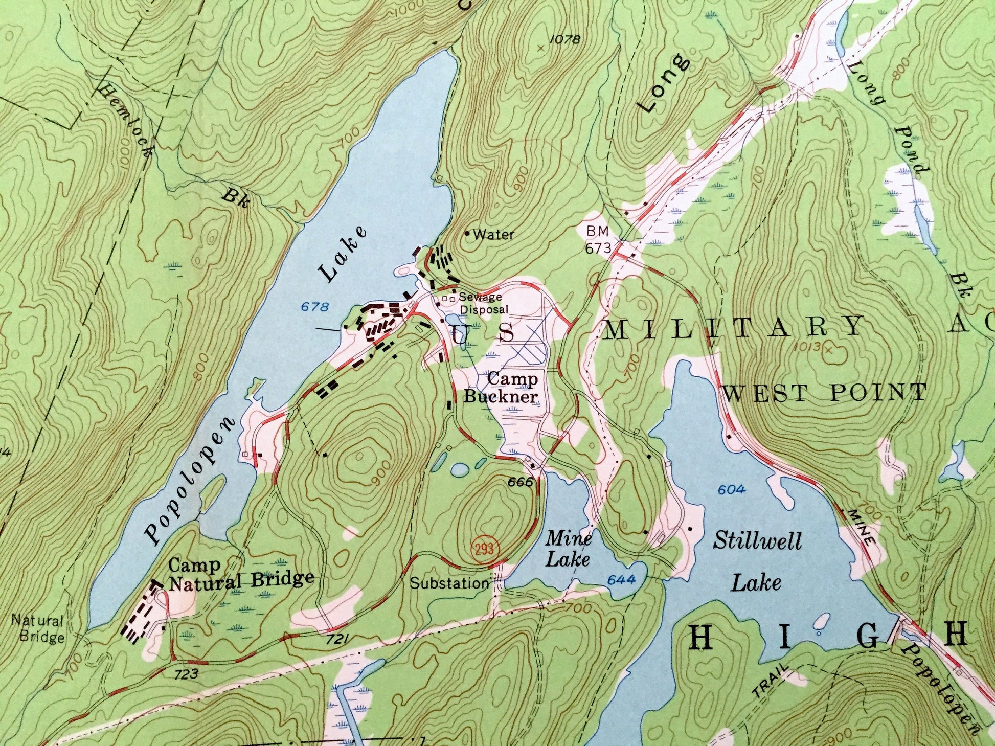 Points of Interest: Rockland County, Orange County, Lake Popolopen, Palisades Interstate Park, Stillwell Lake, Long Pond, Lake Te-ata, Lower Twin Lake, Cranberry Lake, Forest Lake, Silver Mine Lake, Lake Tiorati, Lake Cohasset, Camp Wildwood, West Point Girls Camp, Camp Natural Bridge, Camp Buckner, West Point Military Academy, Flaggy Meadow Mountain, and many more hills, streams, ponds, houses, schools, churches and roads.