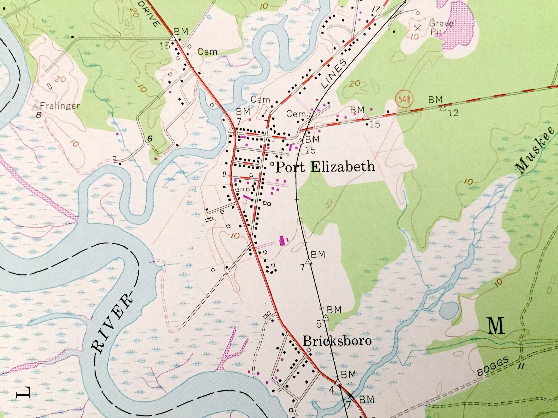 Beautiful, antique map of Port Elizabeth, New Jersey and surrounding Cumberland County and Cape May County areas. This is an authentic 1956 edition, 1972 print from the U.S. Geological Survey and NOT a computer reproduction.