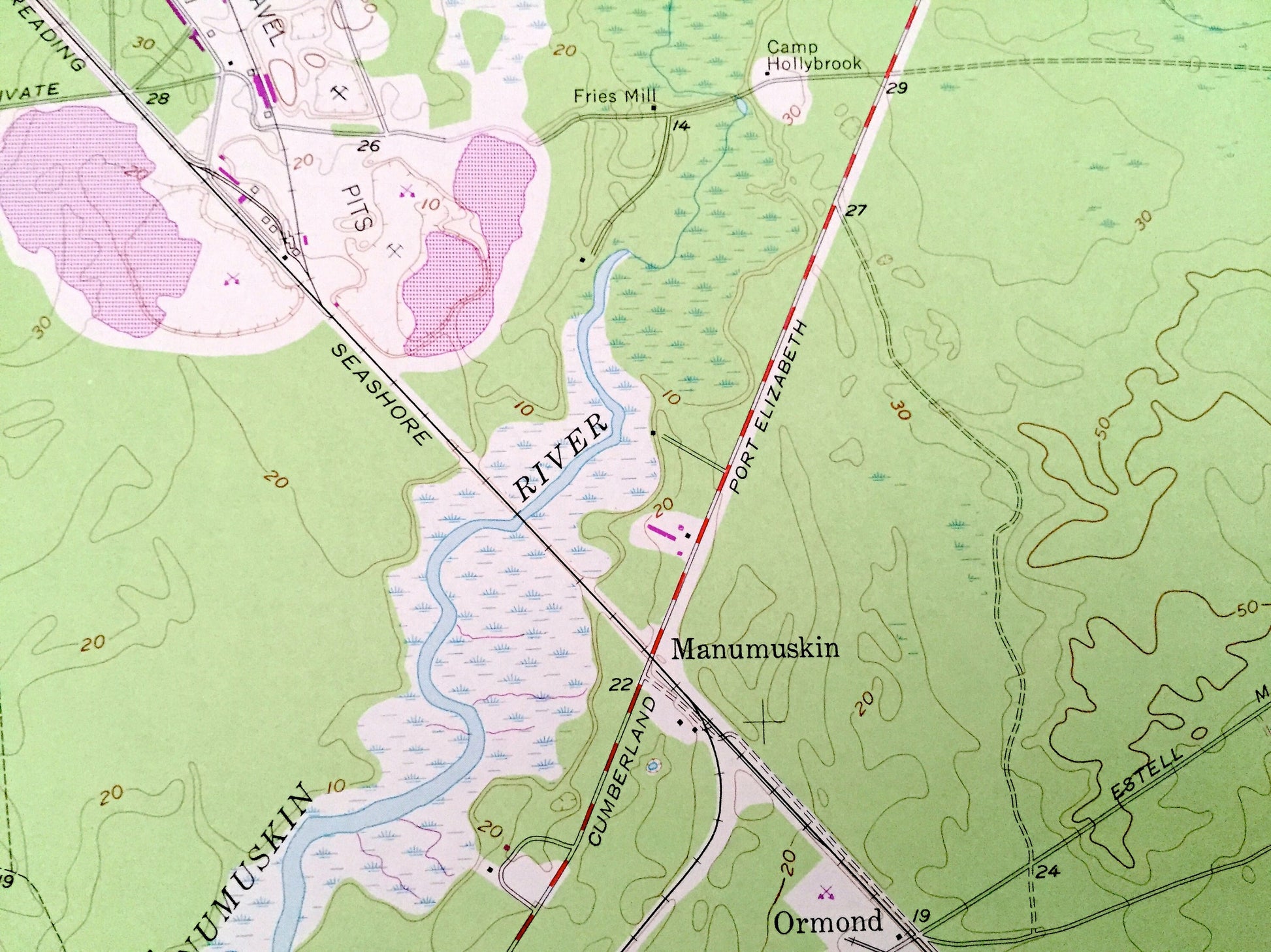 Points of Interest: Fries Mill, Camp Hollybrook, Muskee Hill, Belleplain State Forest, Cape May County, Manumuskin River, Jones Mill, Maurice River, Little Mill Creek, Crowder Run, Peterson Run, West Creek, Slab Branch, Middle Branch, Nixons Branch, Lawrence Branch, Gravel Pits, and many more roads, ponds, houses, beaches, islands, rivers, inlets, marshes, lighthouses and creeks.