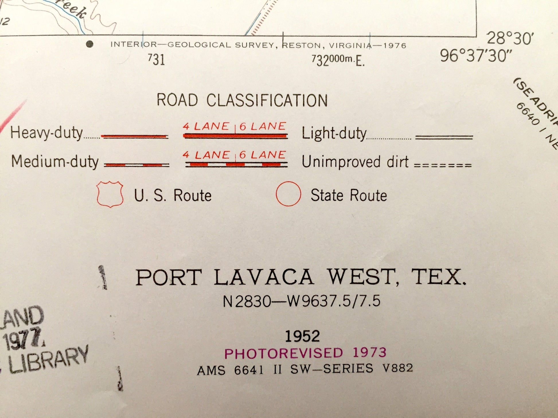 Beautiful, antique map of Port Lavaca, Texas. This is an authentic 1952 edition, 1973 print from the U.S. Geological Survey and NOT a computer reproduction.