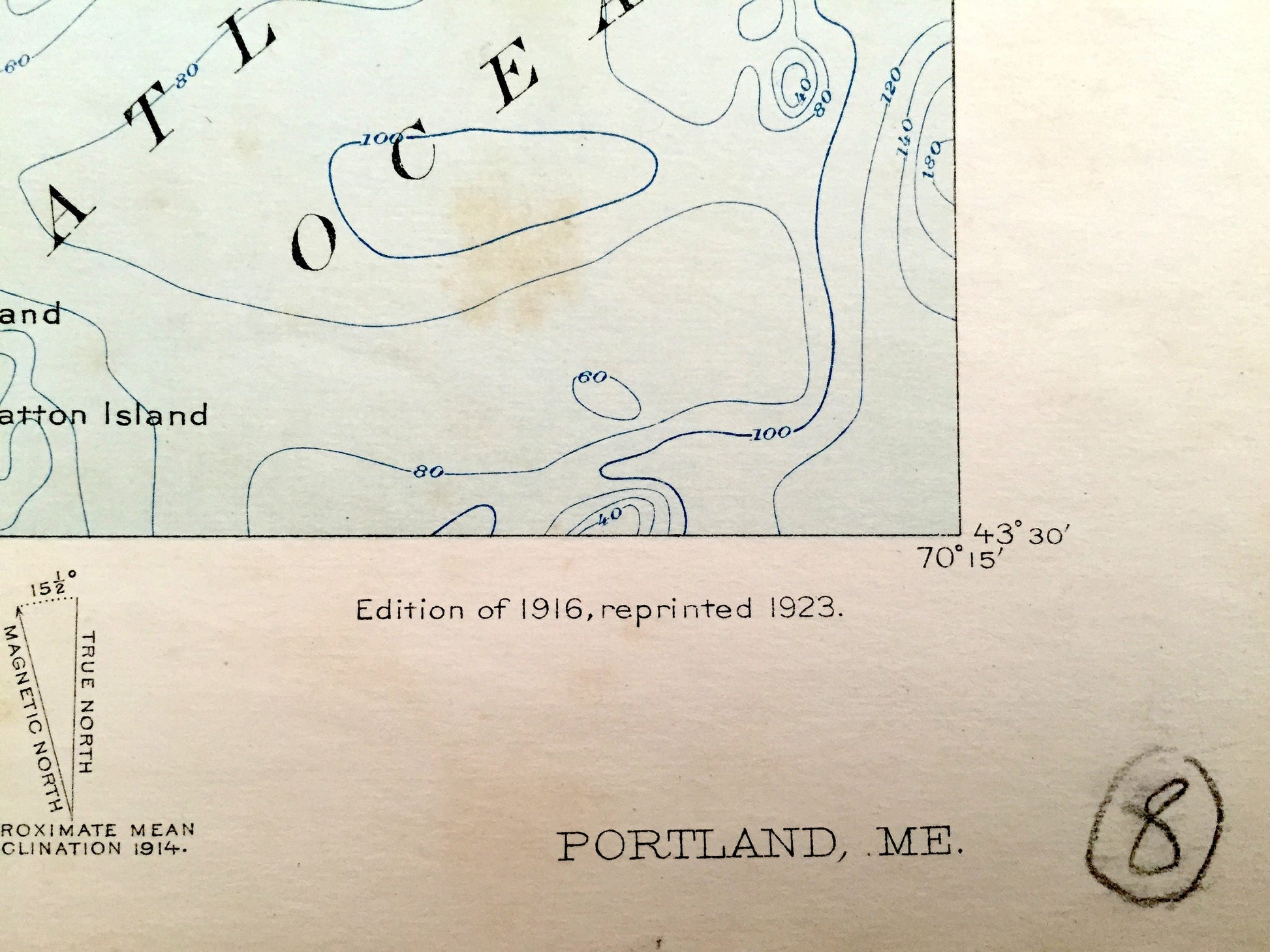 See what Portland, Scarborough, Westbrook and Falmouth looked like over 100 year ago. Lots of intricate details and geological contours. Map even has little squares for every house that existed at the time. The USGS cartographers were very thorough back then! On the back is a description of topographic symbols and map guide.