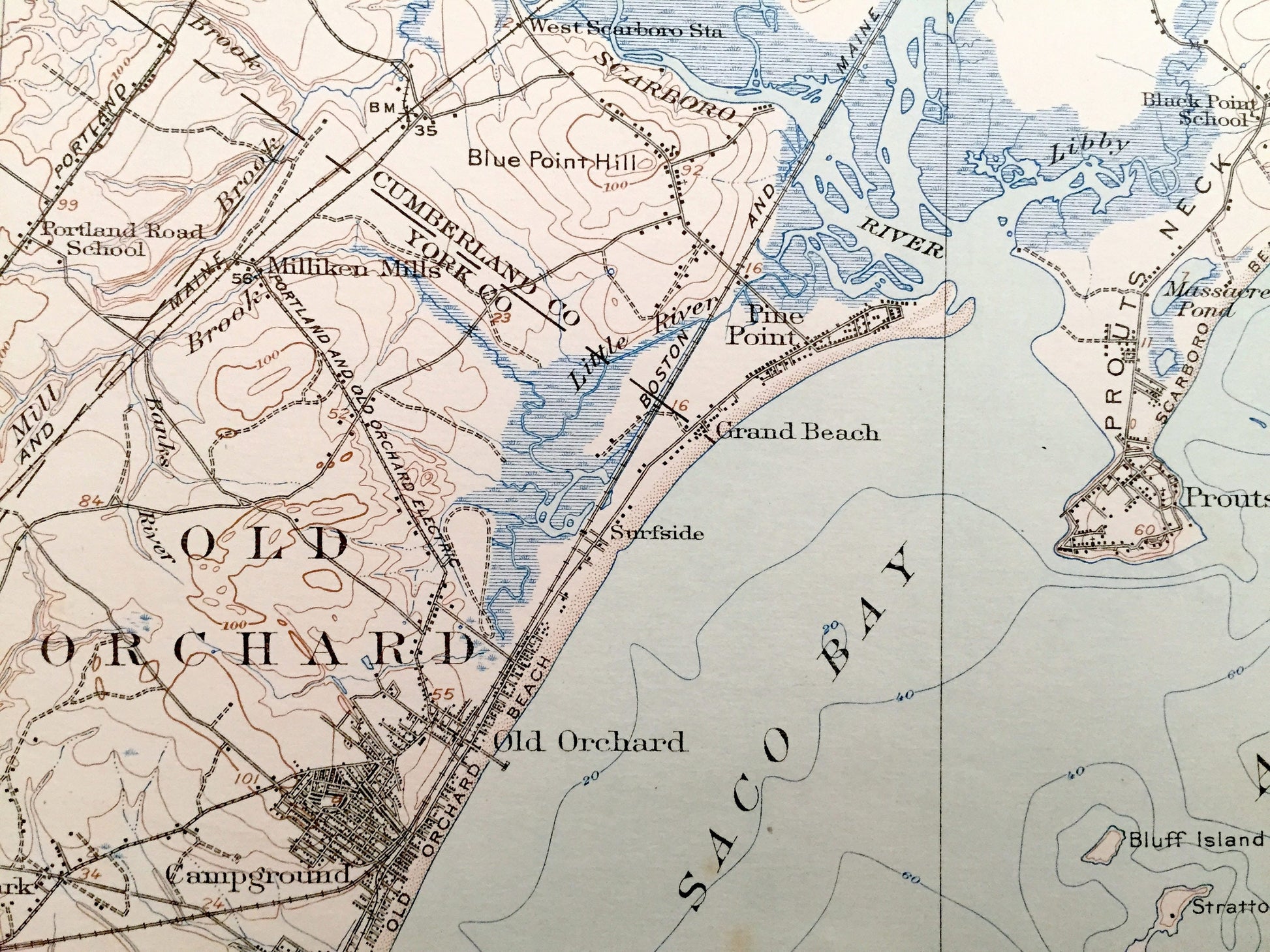 Antique Portland, Maine 1916 US Geological Survey Topographic Map – Scarborough, Westbrook, Falmouth, Old Orchard, Saco, Cape Elizabeth, ME