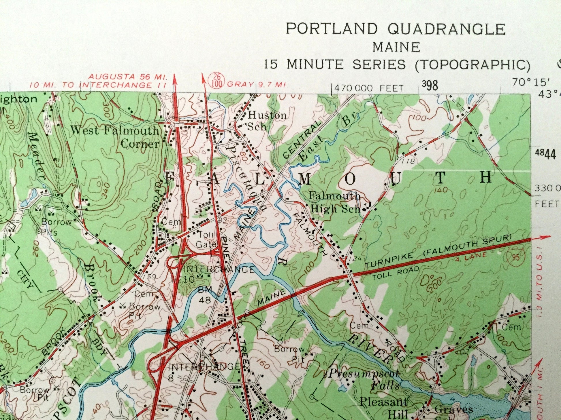 See what Portland, Scarborough, Westbrook and Falmouth looked like over 60 years century ago. Lots of intricate details and geological contours. Map even has little squares for every house that existed at the time. The USGS cartographers were very thorough back then!