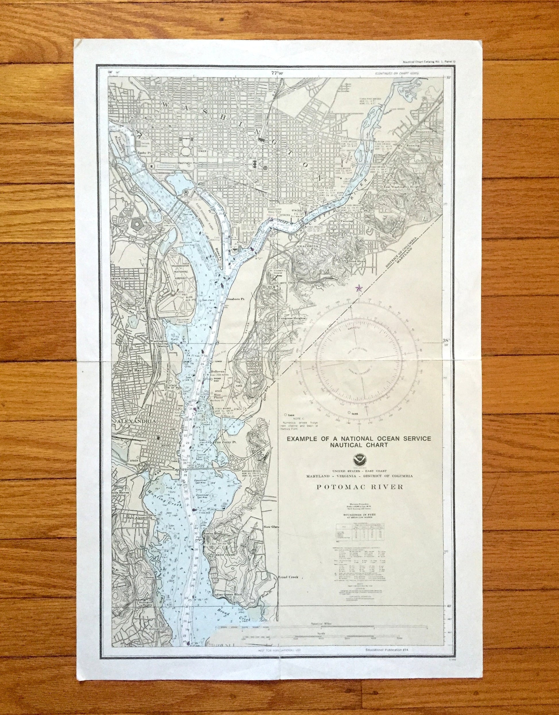 Antique Potomac River 1980 US Coast Guard Nautical Map – Washington DC, Alexandria, Arlington, Virginia, Anacostia, Maryland, Georgetown VA