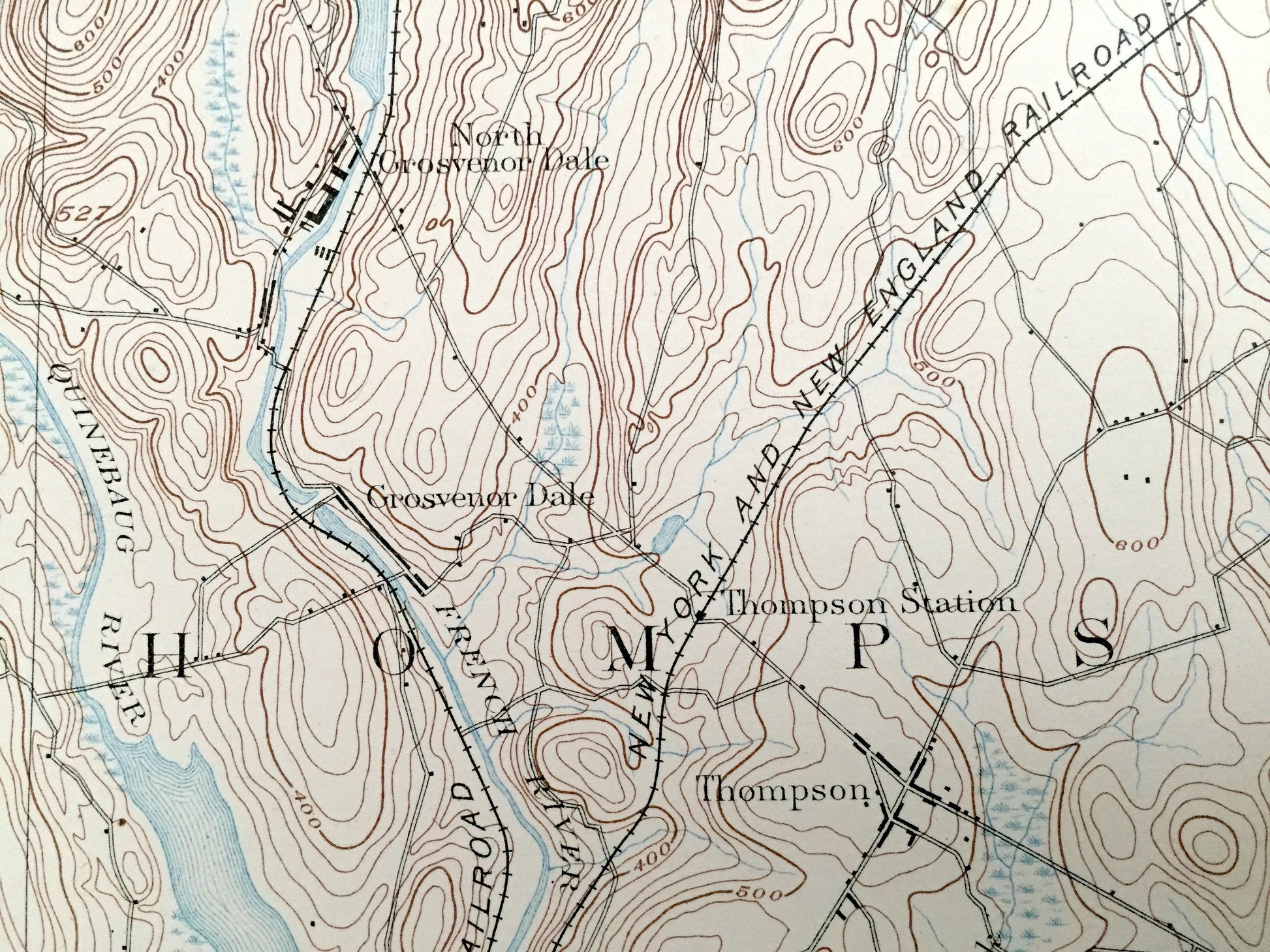 Points of Interest: Fivemile River, Quinebaug River, Bowdish Reservoir, Chandler Hill, Allen Hill, Woodstock Pond, Quaddick Reservoir, Mashentuck Hill, New York and New England Railroad, and lots more hills, mountains, creeks, towns, roads and train tracks.