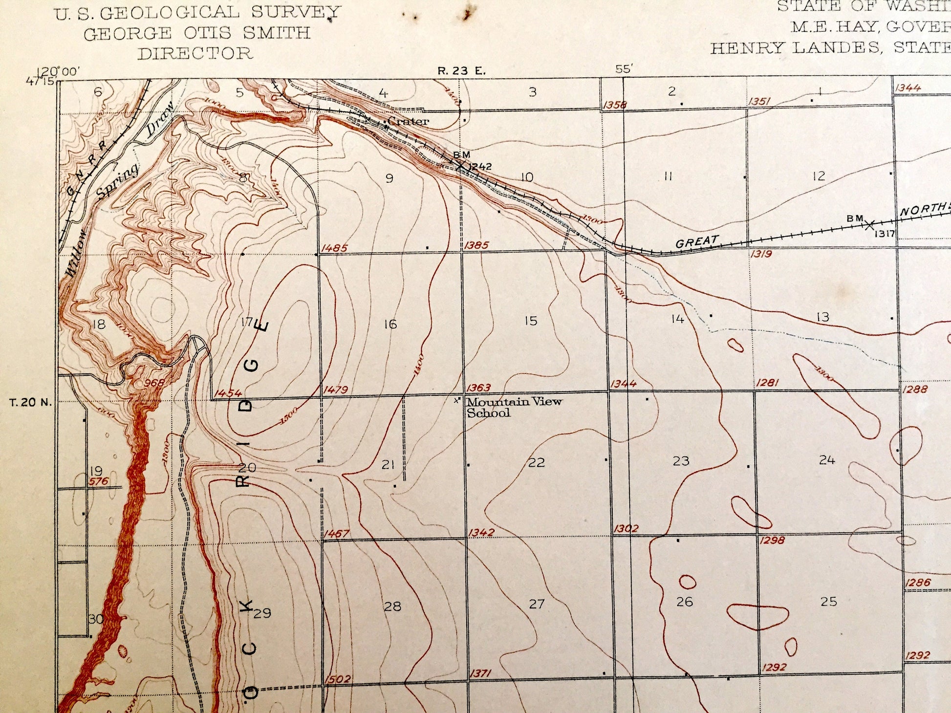 Beautiful, antique map of Quincy, Washington and surrounding Grant County area. This is an authentic 1911 print from the U.S. Geological Survey and NOT a computer reproduction.