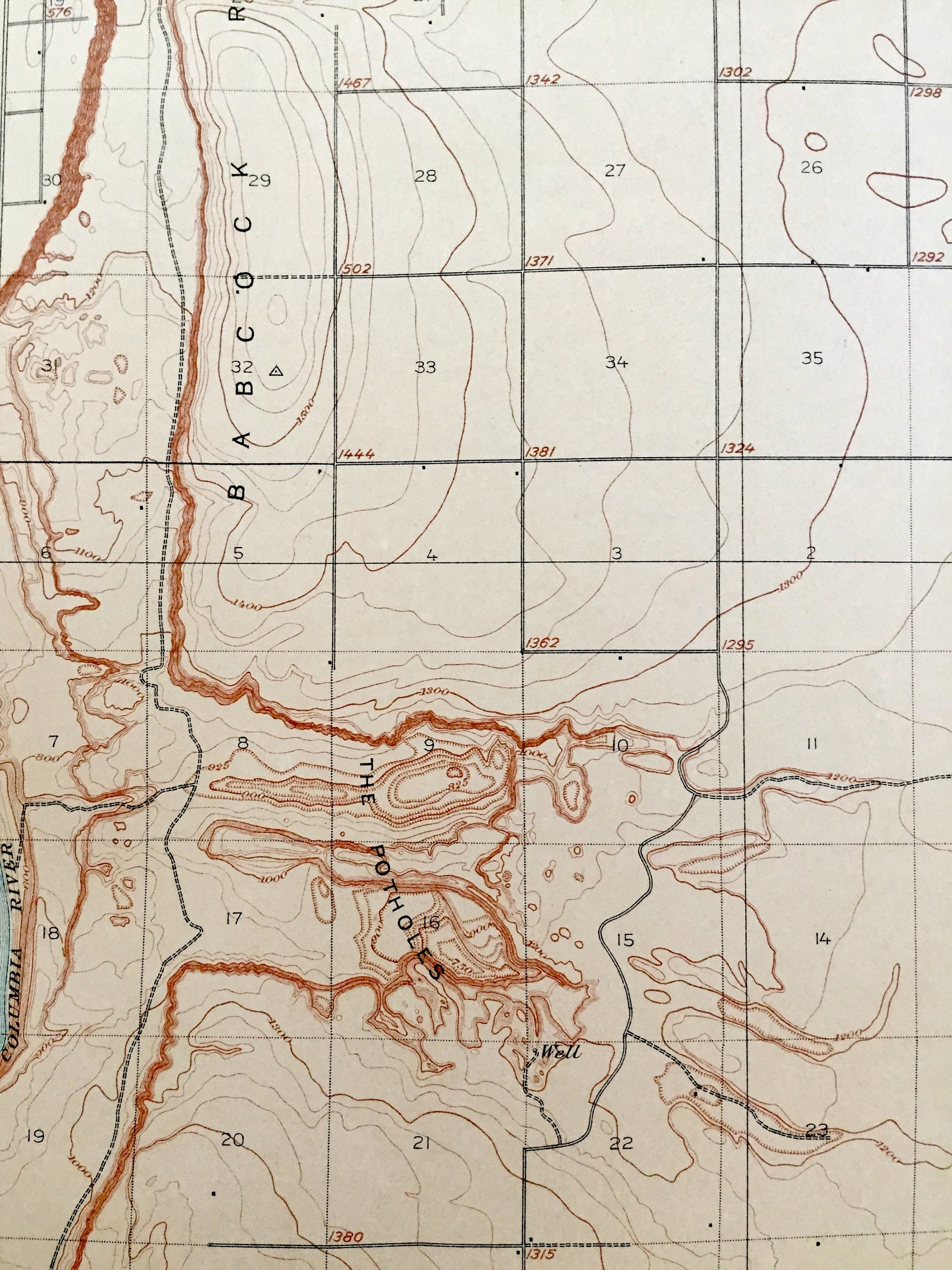 Points of Interest: Grant County, Babcock Ridge, Columbia River, The Potholes, Frenchman Hills, Ancient Lake, and lots more hills, mountains, creeks, towns, roads and train tracks.