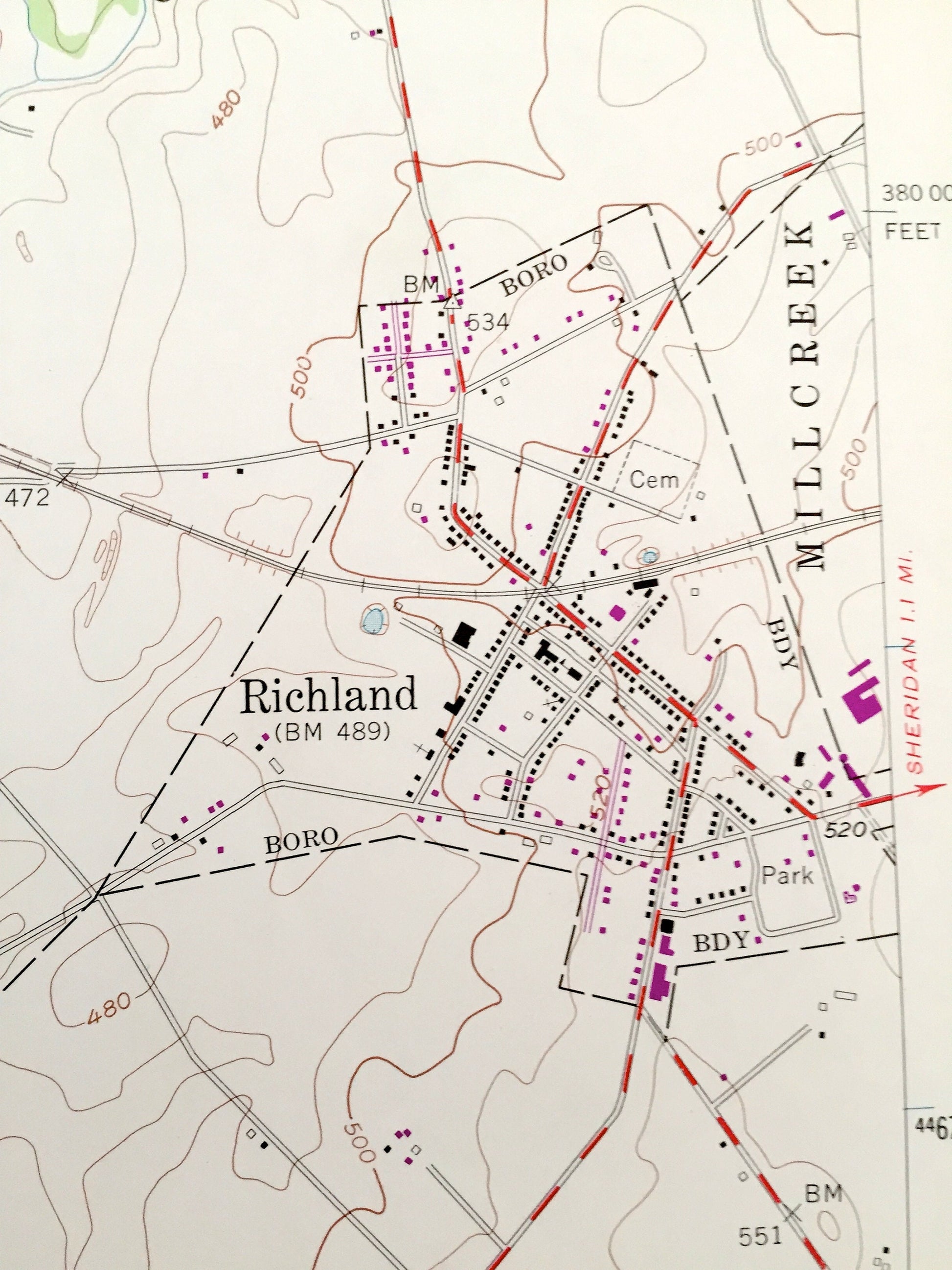 Beautiful, antique map of Richland, Pennsylvania and surrounding Lebanon County and Lancaster County areas. This is an authentic 1955 edition, 1974 print from the U.S. Geological Survey and NOT a computer reproduction.