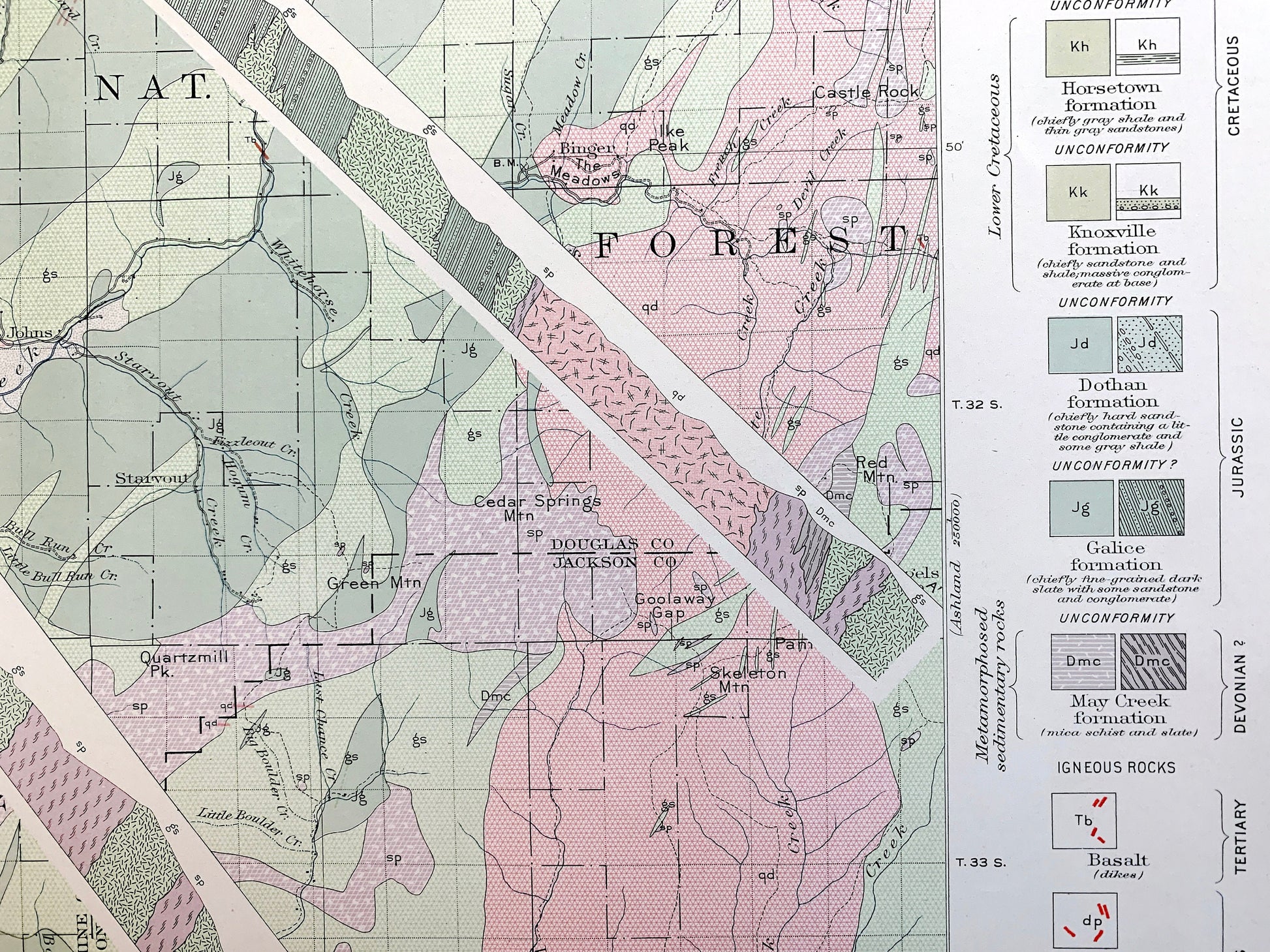 Points of Interest: Cow Creek, South Umpqua River, Silver Butte, Pleasant Valley, Walker Mountain, Tellurium Peak, Southern Pacific Railroad, Missouri Bottom, Mt. Isaac, Bland Mountain, Castle Rock, Grave Creek, and lots more hills, mountains, creeks, towns, roads and train tracks.