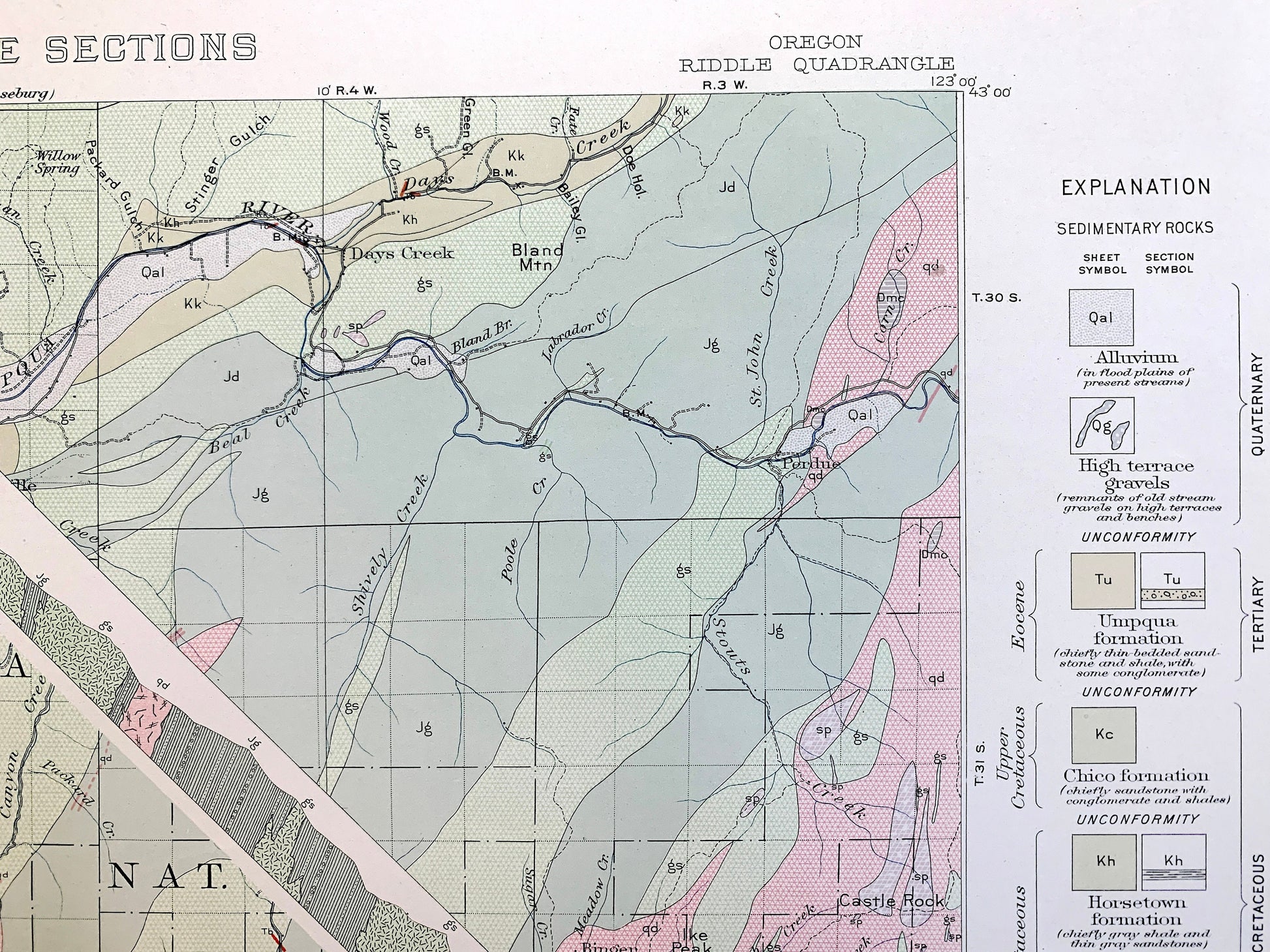 Beautiful, antique Structure Sections map of Riddle, Oregon and surrounding Douglas, Josephine, and Jackson County area. This is an authentic 1923, edition 1923 print from the U.S. Geological Survey and NOT a computer reproduction.