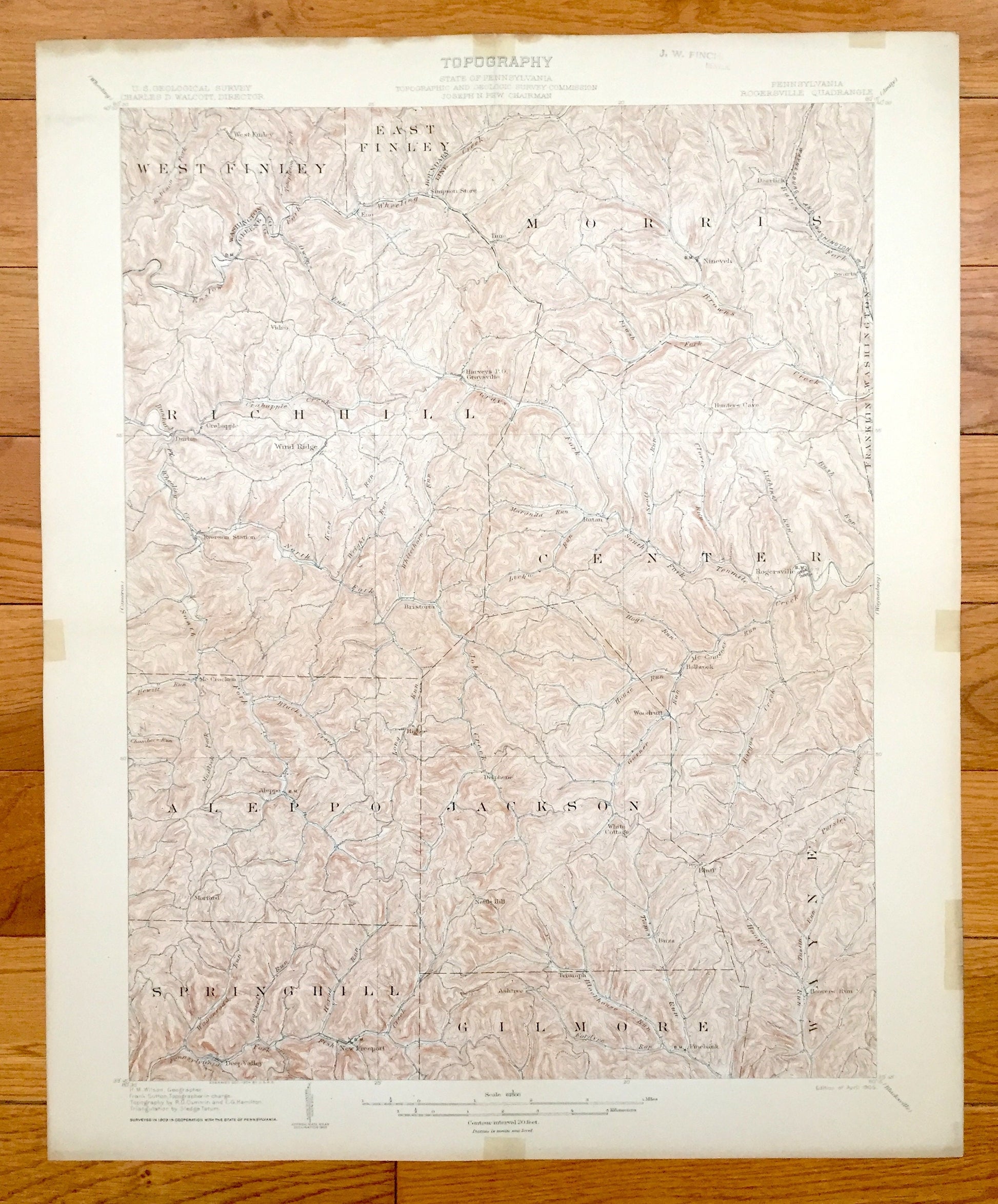 See what Pennsylvania looked like over 110 years ago. Lots of intricate details and geological contours. Map even has little squares for every house that existed at the time. The cartographers were very thorough back then! On the back is a description of topographic symbols and map guide.