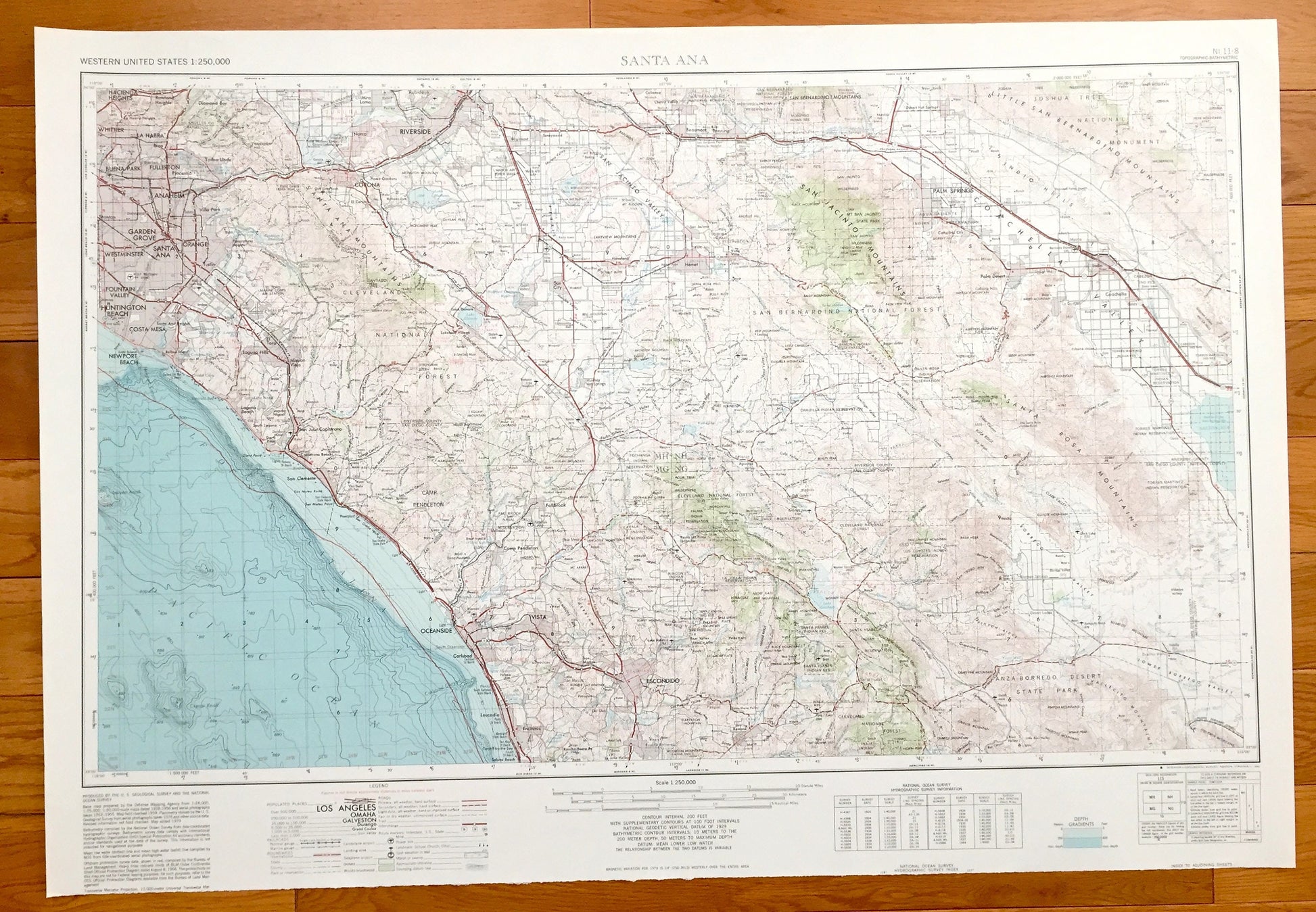 Beautiful, antique map of Santa Ana, California and surrounding area. This is an authentic 1959 edition, 1980 print from the U.S. Geological Survey and NOT a computer reproduction.