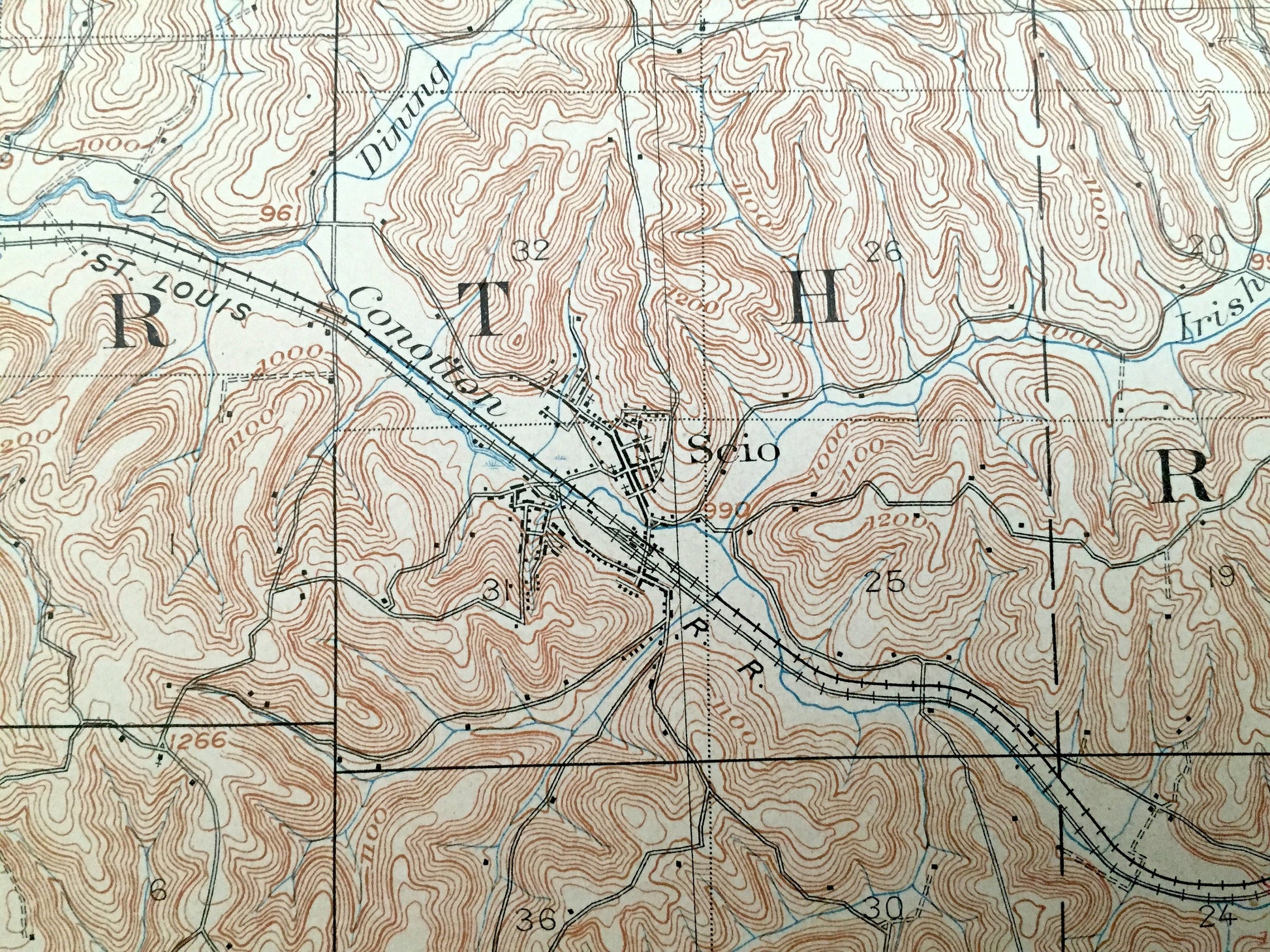 Beautiful, antique map of Scio, Ohio and surrounding Carroll and Harrison County area. This is an authentic 1904 print from the U.S. Geological Survey and NOT a computer reproduction.