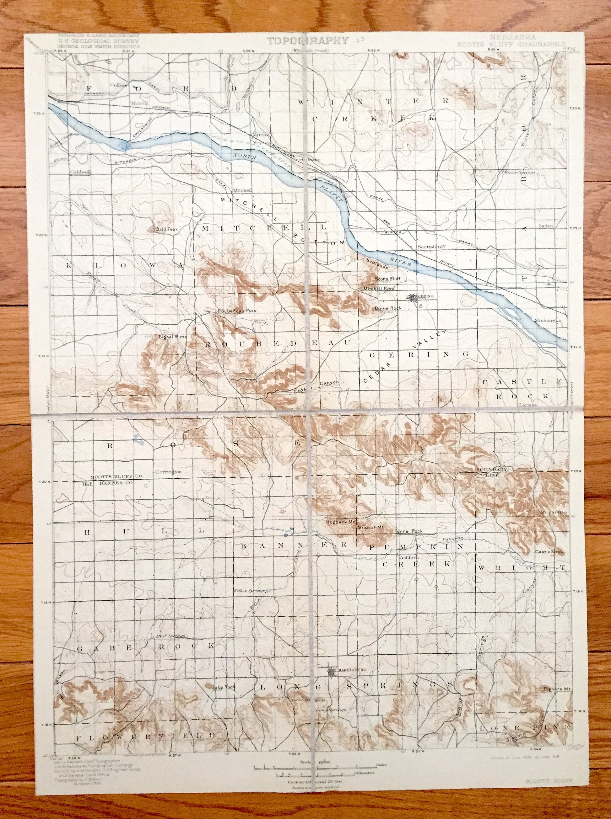 See what Nebraska looked like more than 120 years ago. Lots of intricate details and geological contours. Map even has little squares for every house that existed at the time. The USGS cartographers were very thorough back then! At some point the map was canvas-backed and split into quadrants, perhaps for field work.