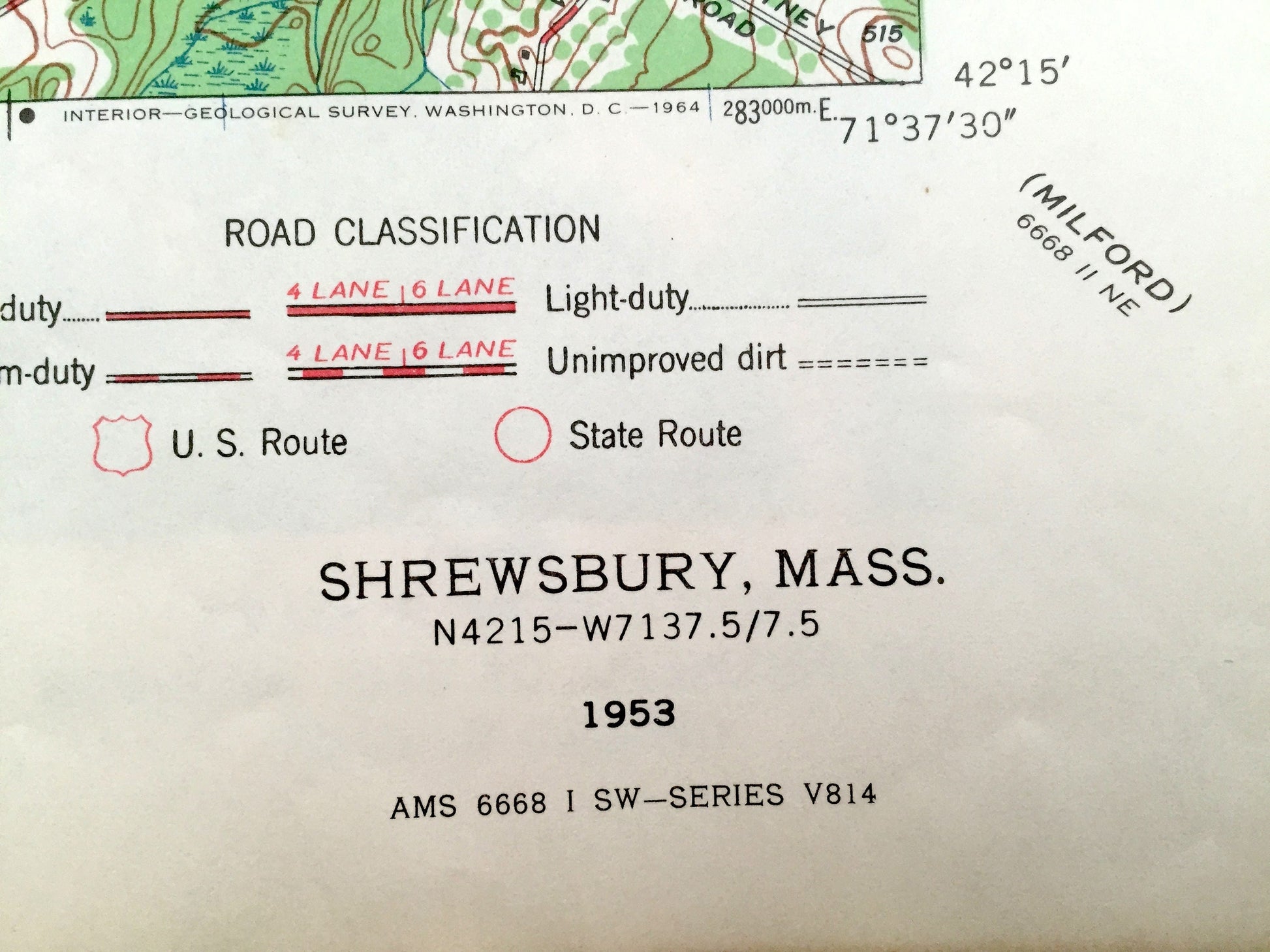 See what Shrewsbury Massachusetts and the surrounding Worcester County area looked like over 60 years ago. Lots of intricate details and geological contours. Map even has little squares for every house that existed at the time. The USGS cartographers were very thorough back then!