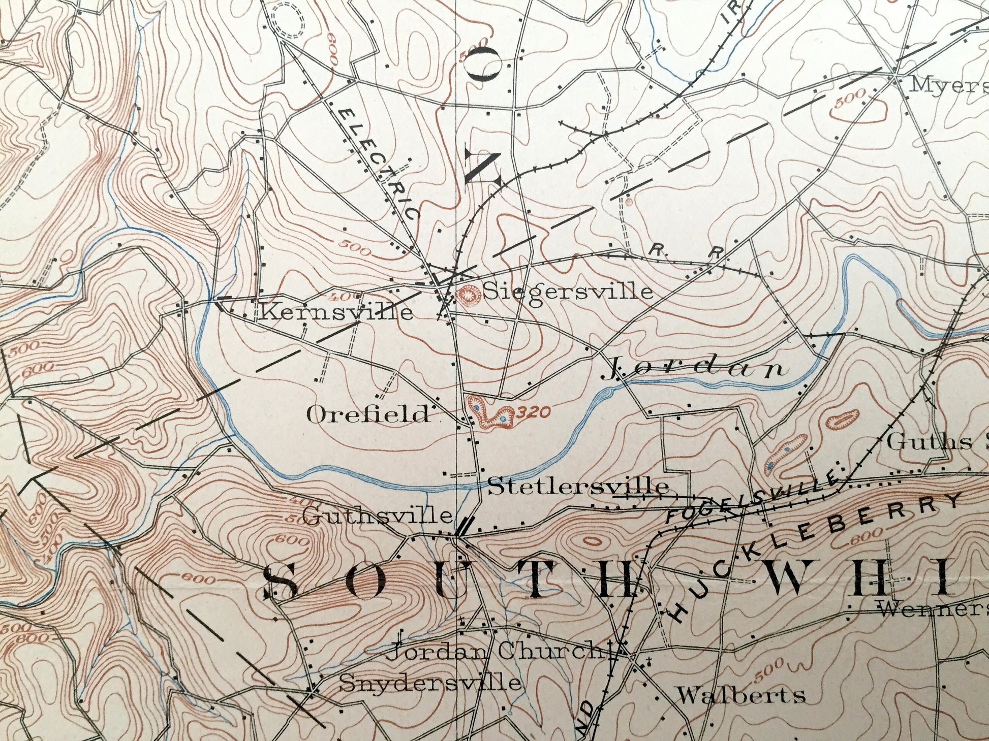 Points of Interest: Blue Mountain, Shochary Ridge, Haas Hill, Lehigh River, Central Railroad of New Jersey, Lehigh Valley Railroad, Philadelphia & Reading Railroad, and lots more hills, mountains, creeks, towns, roads and train tracks.