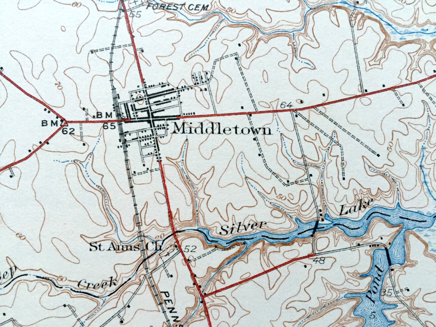See what Smyrna and New Castle County looked like over 90 years ago. Lots of intricate details and geological contours. Map even has little squares for every house that existed at the time. The cartographers were very thorough back then! On the back is a description of topographic symbols and map guide.