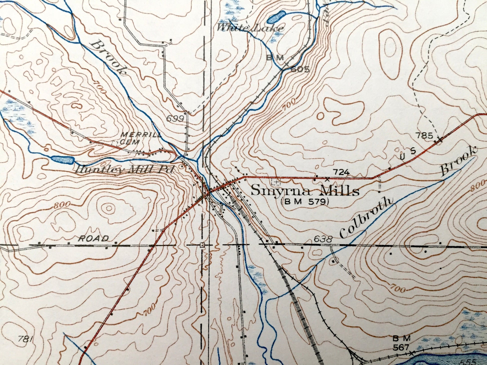 Antique Smyrna Mills, Maine 1937 US Geological Survey Topographic Map – Aroostook County, Oakfield Island Falls Pleasant Meduxnekeag Lake ME