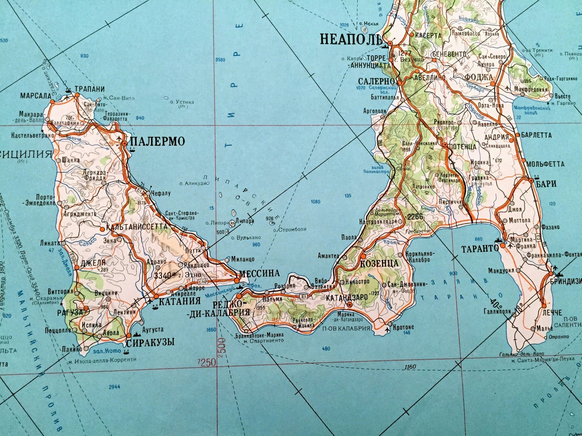 Beautiful, antique and very rare *Wall-Size* map of the Mediterranean Sea and surrounding areas of Europe. This is an authentic 1980 edition, 1980 print from the Soviet Army. It is NOT a computer reproduction. All text is in the Cyrillic Russian alphabet.