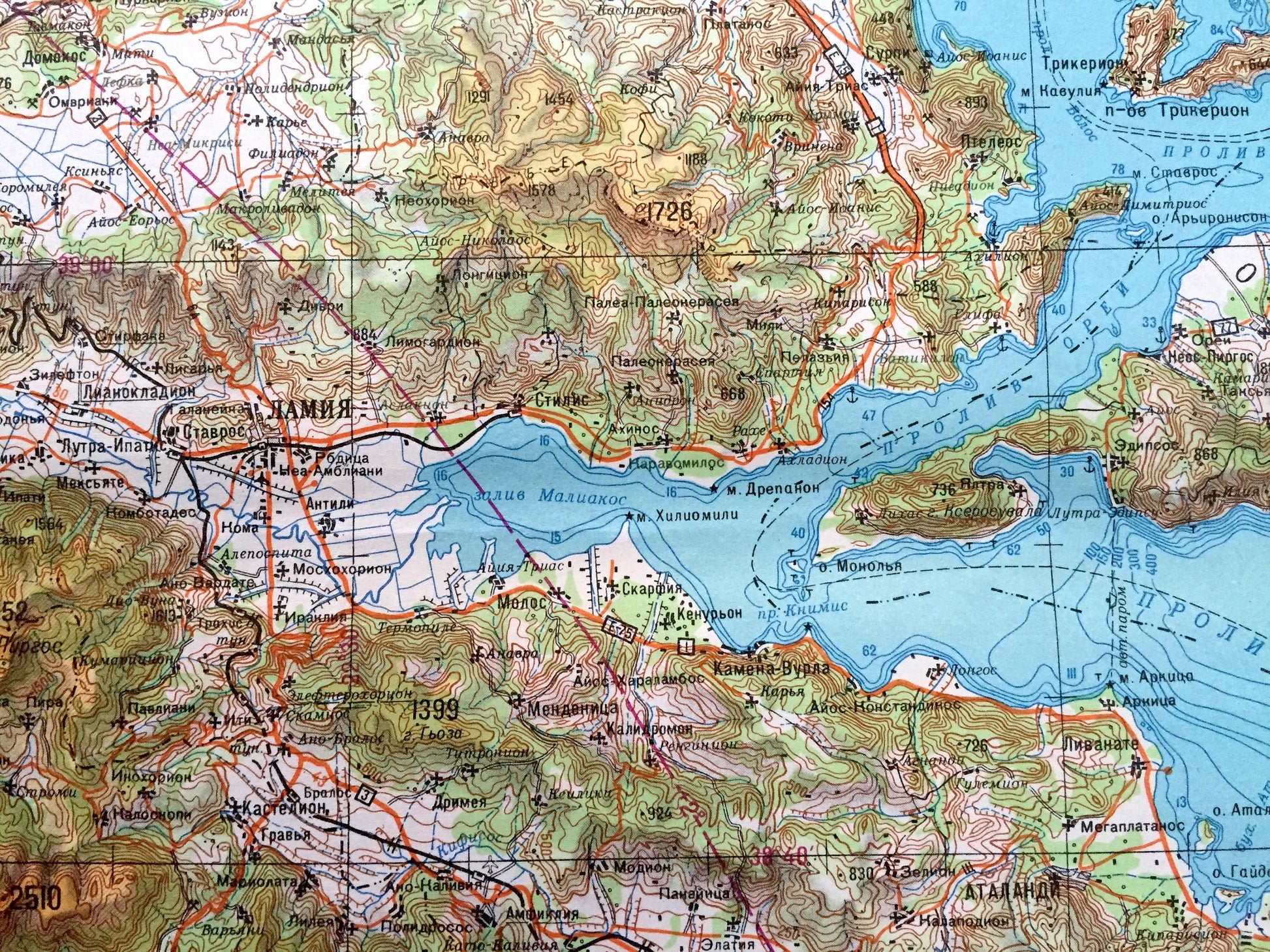 See what Greece looked like over 50 years ago to the eyes of the USSR during the height of the Cold War. Lots of charming, intricate details and geological contours, including roads, railroads, major buildings, rivers and counties. The Soviet cartographers were very thorough back then!