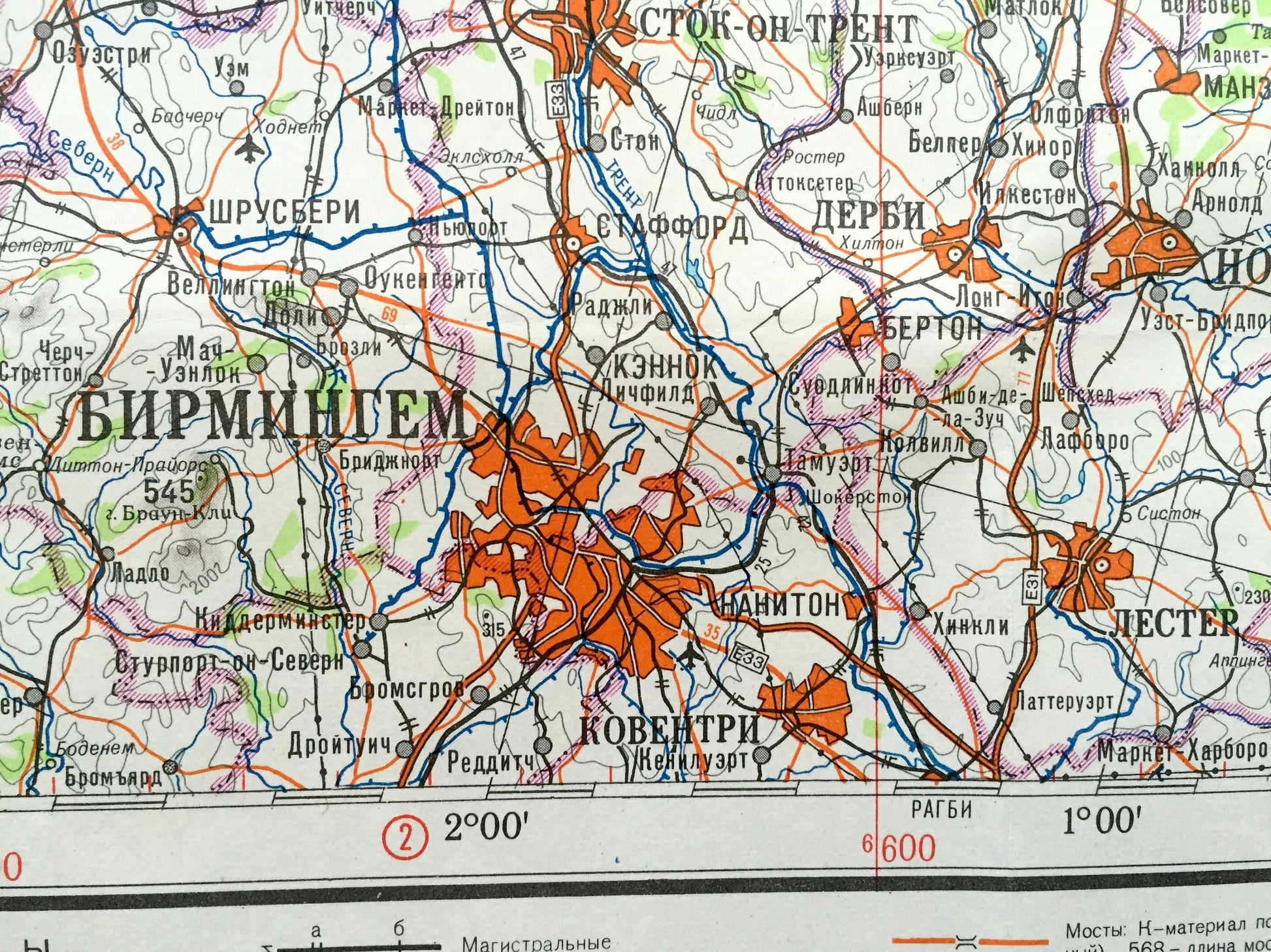 See what Great Britain looked like over 50 years ago, as mapped by the Soviet Army! Lots of intricate details and geological contours, including roads, railroads, rivers and counties. The cartographers of the USSR were very thorough back then!