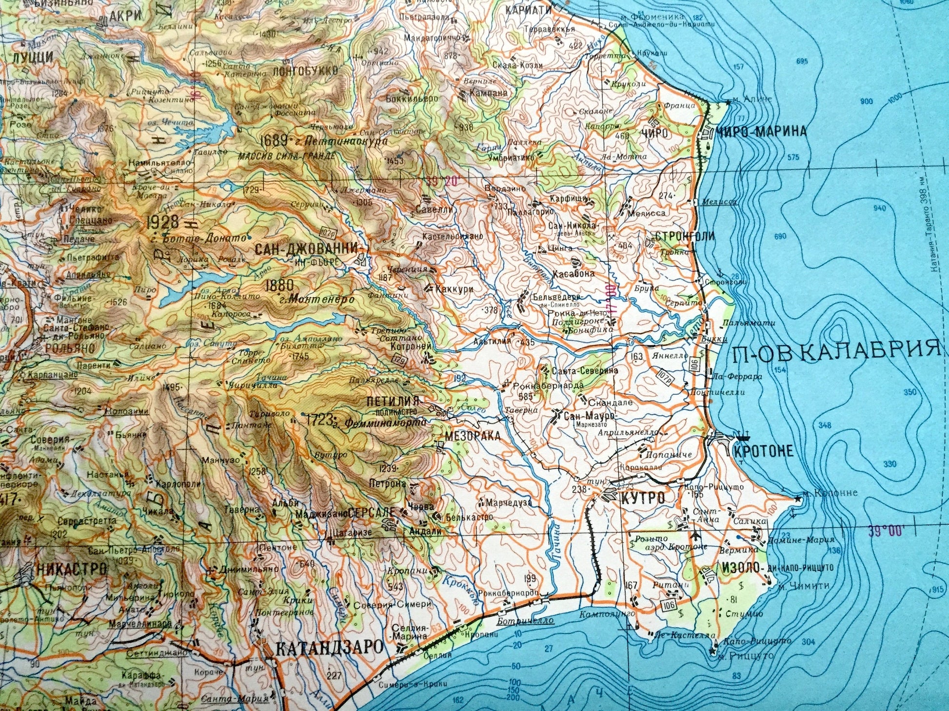 Antique SOVIET Sicily & Calabria, Italy 1967 Russian Army Survey Map – Messina, Catanzaro, Cosenza, Crotone, Tropea, Reggio, Mediterranean