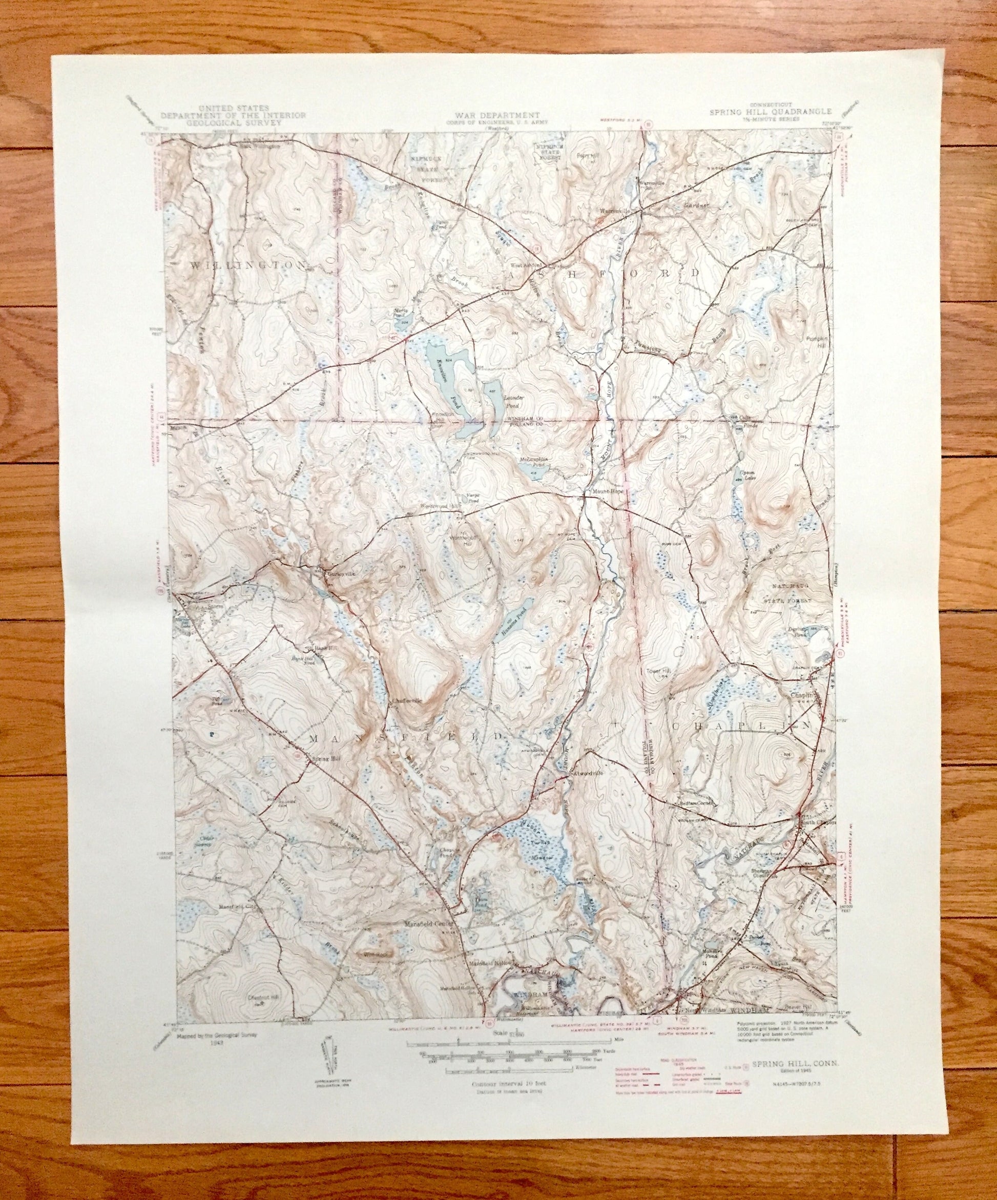 See what Ashford, Spring Hill and Storrs, home of University of Connecticut looked like over 75 years ago. Lots of intricate details and geological contours. Map even has little squares for every house that existed at the time. The cartographers were very thorough back then! On the back is a description of topographic symbols and map guide.