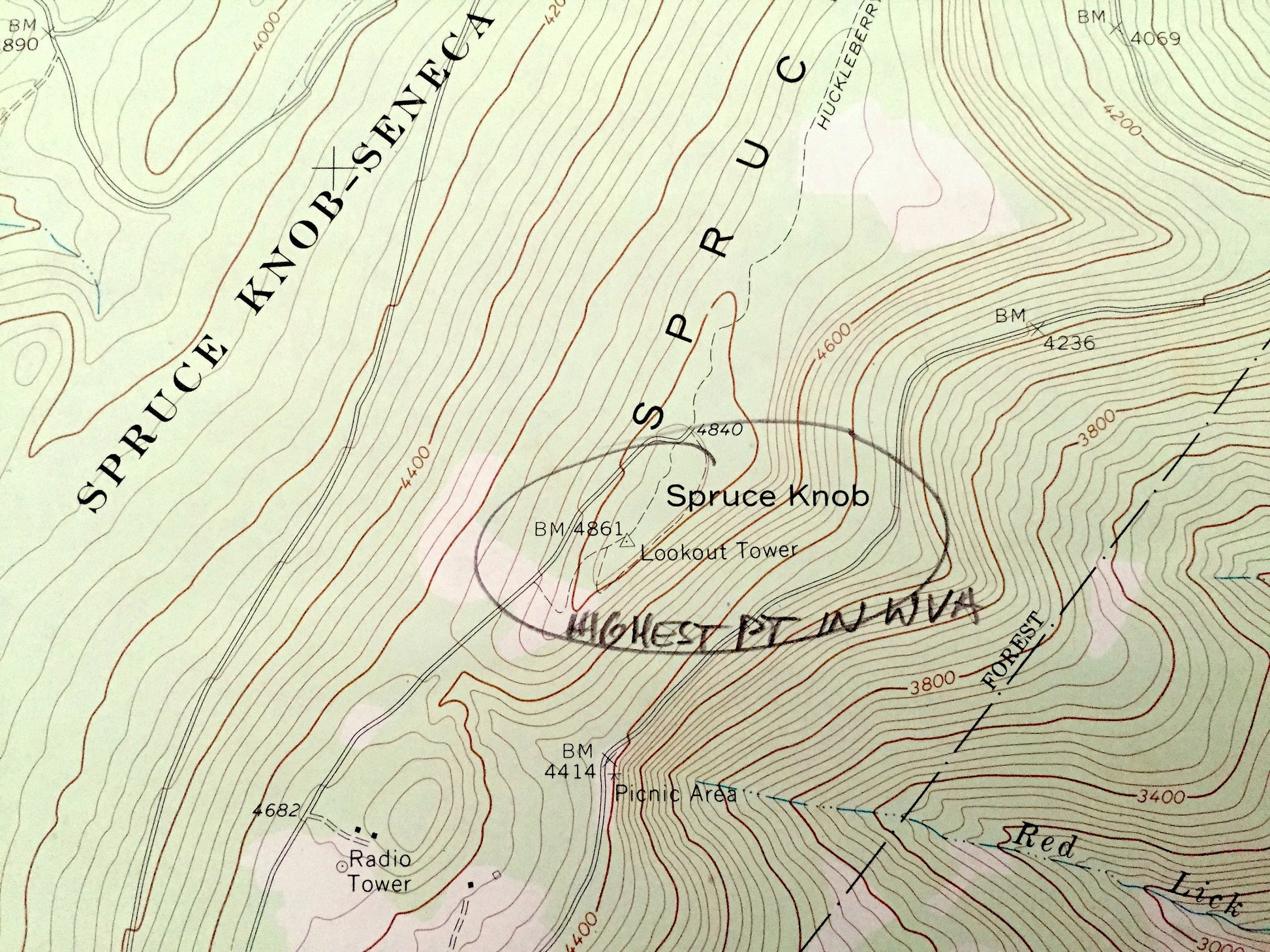 Beautiful, antique map of Spruce Knob, West Virginia and surrounding Pendleton, Randolph, and Pocahontas County areas. This is an authentic 1970 edition, 1973 print from the U.S. Geological Survey and NOT a computer reproduction.