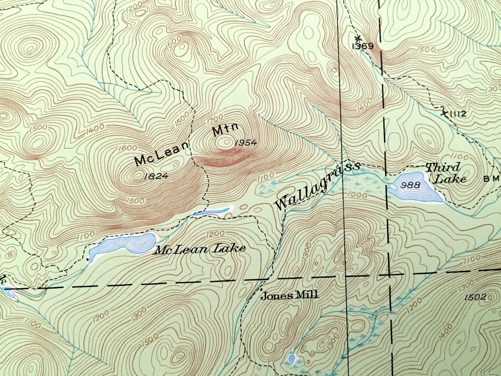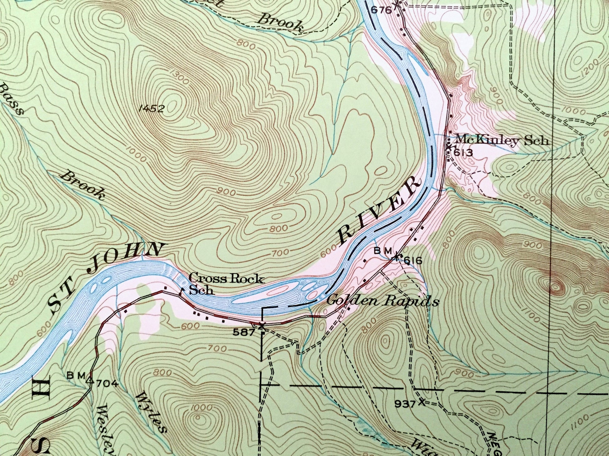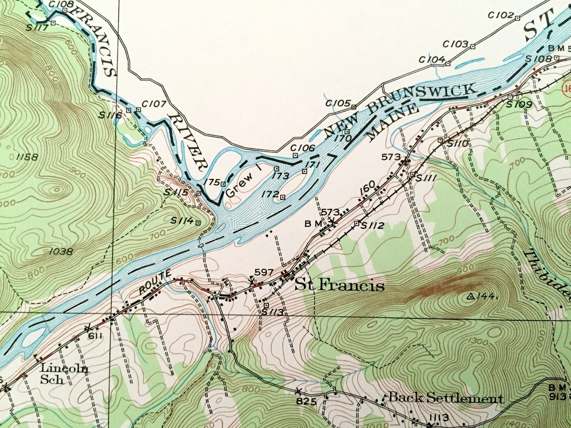 Points of Interest: Aroostook County, St. Johns River, St. Francis River, Golden Rapids, Bran Lake, Wallagrass Stream, Negro Brook Lakes, McLean Mountain, McLean Lake, Black Lake, Soucier Camp, New Brunswick, Canada, and lots more hills, mountains, streams, ponds, houses, schools and roads.