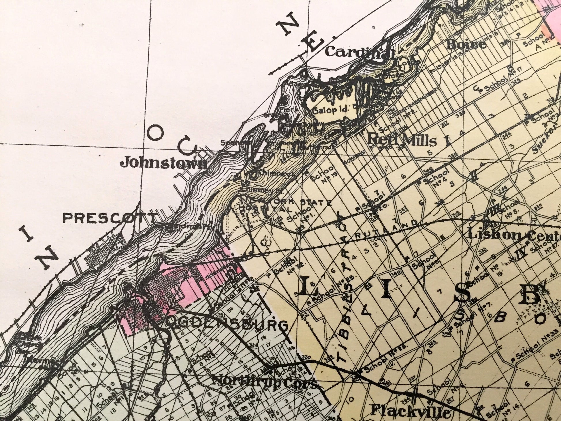 Antique St. Lawrence County, New York 1912 New Century Atlas Map – Canton, Potsdam, Ogdensburg, Morristown, Massena Cranberry Lake Madrid NY