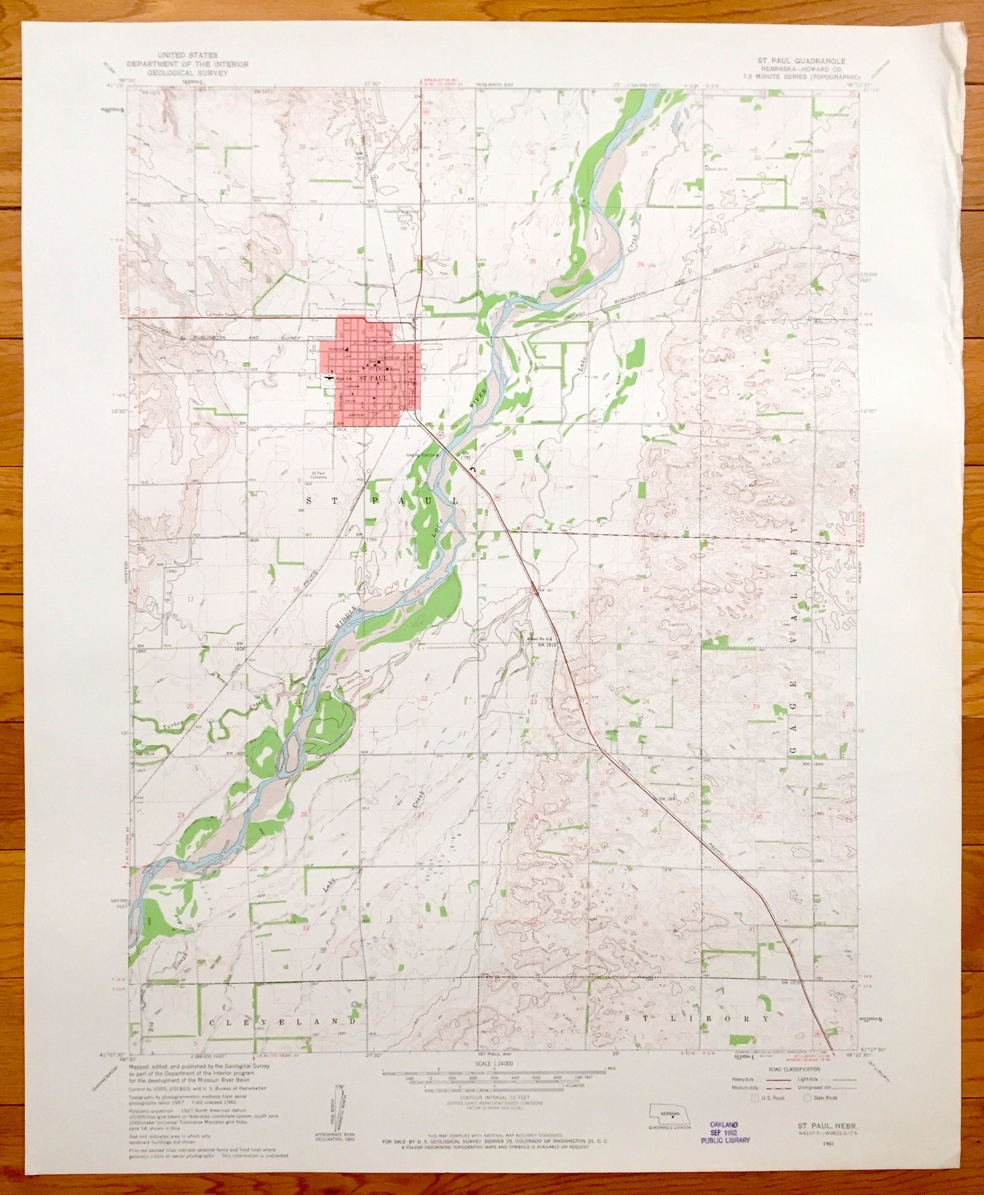 Antique St. Paul, Nebraska 1960 US Geological Survey Topographic Map – Cleveland, St Libory, Gage Valley, Middle Loup River, Howard County