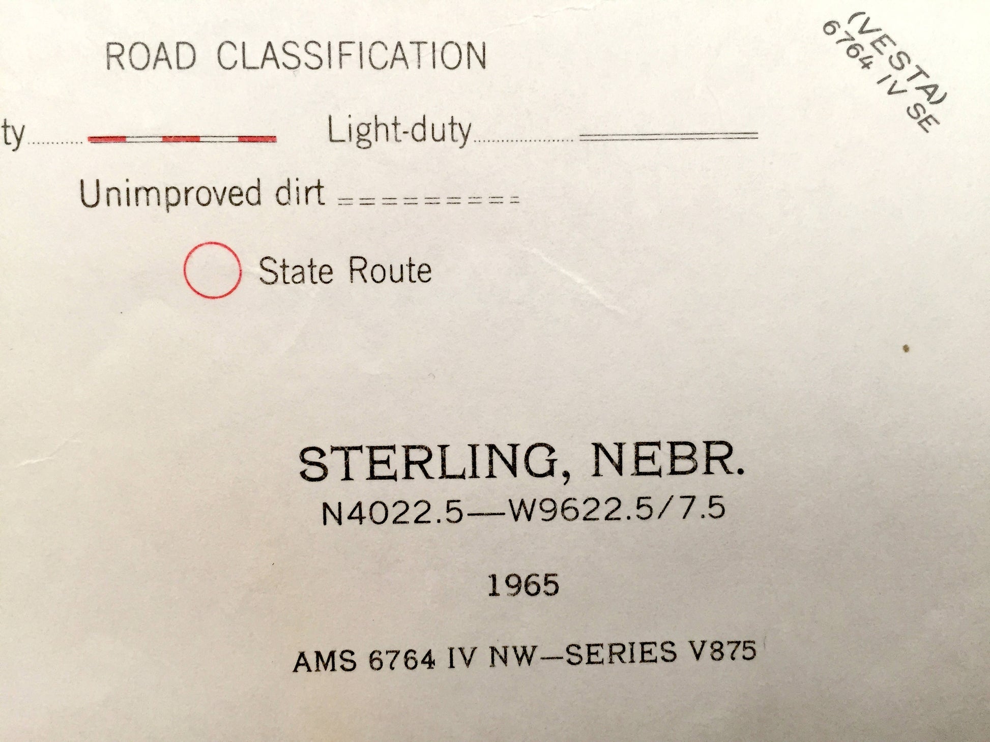 Beautiful, antique map of Sterling, Vesta, Hooker and Adams, Nebraska. This is an authentic 1965 print from the U.S. Geological Survey and NOT a computer reproduction.