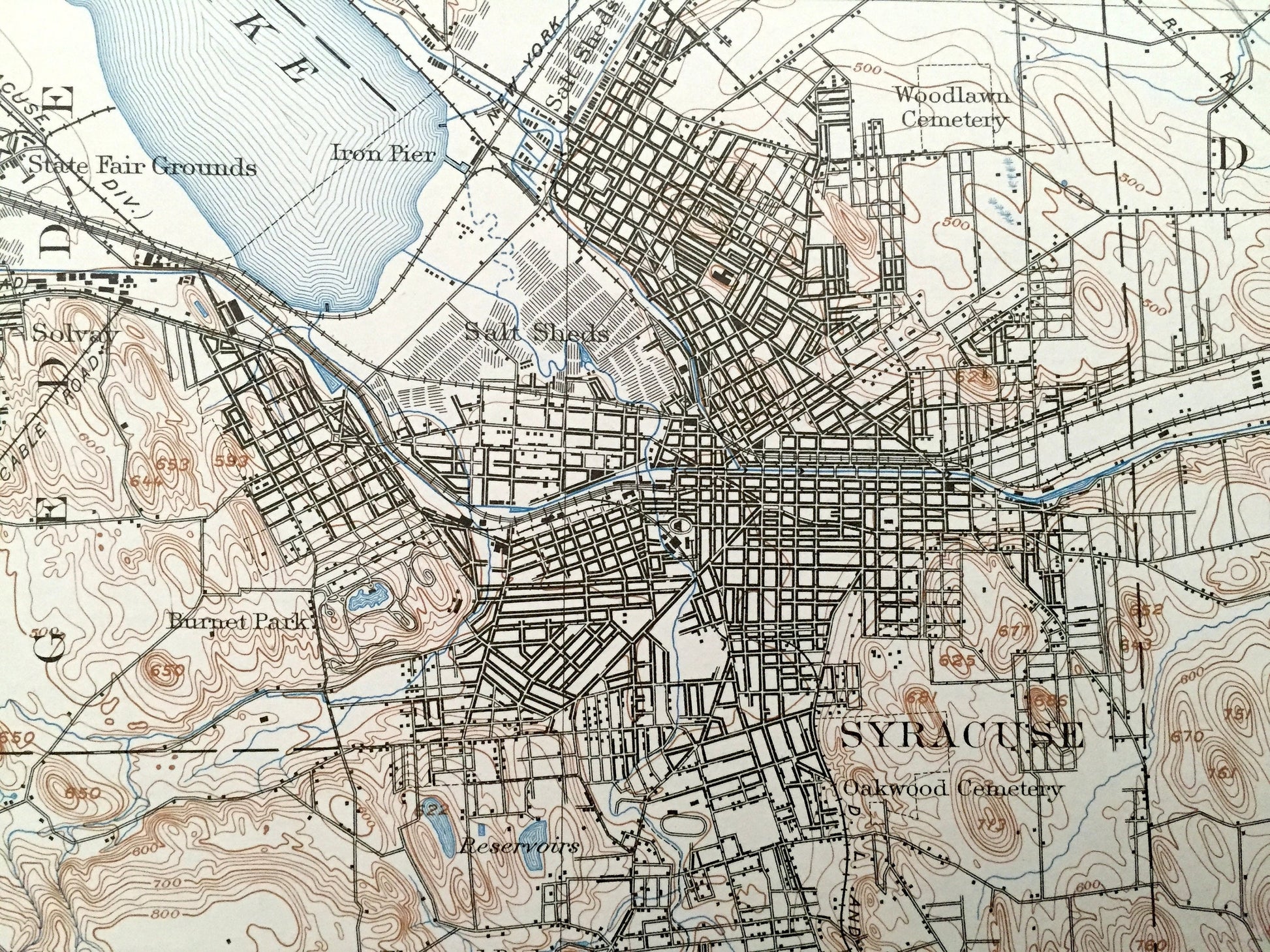 See what Syracuse, Salina, Onondaga, Cicero, Clay and Fayetteville looked like more than 110 years ago. Lots of intricate details and geological contours. Map even has little squares for every house that existed. The USGS cartographers were very thorough back then! On the back is a description of topographic symbols and map guide.