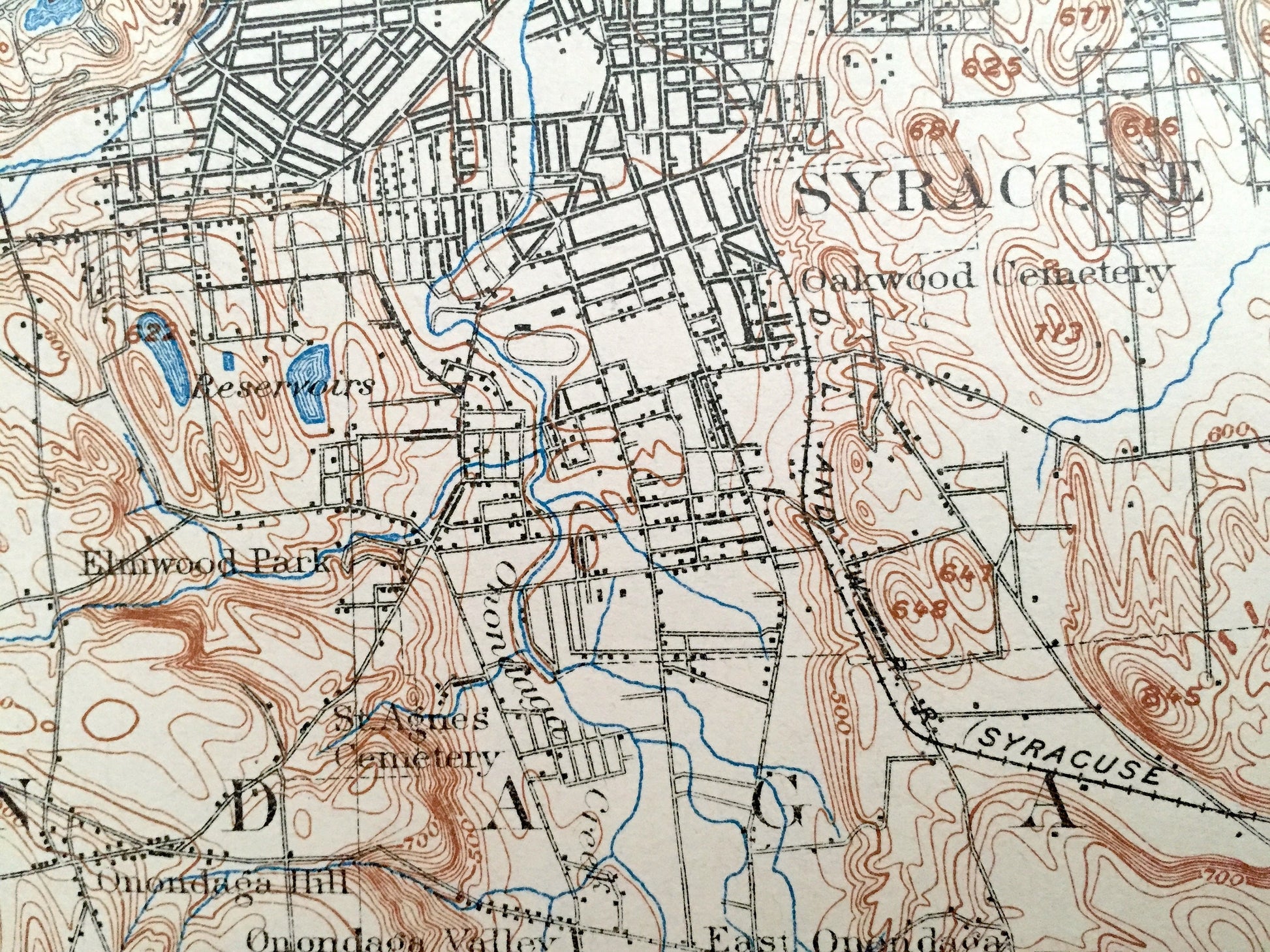 Beautiful, antique map of Syracuse, New York and surrounding Onondaga & Oswego County areas. This is an authentic 1898 edition, 1930 print from the U.S. Geological Survey and NOT a computer reproduction.