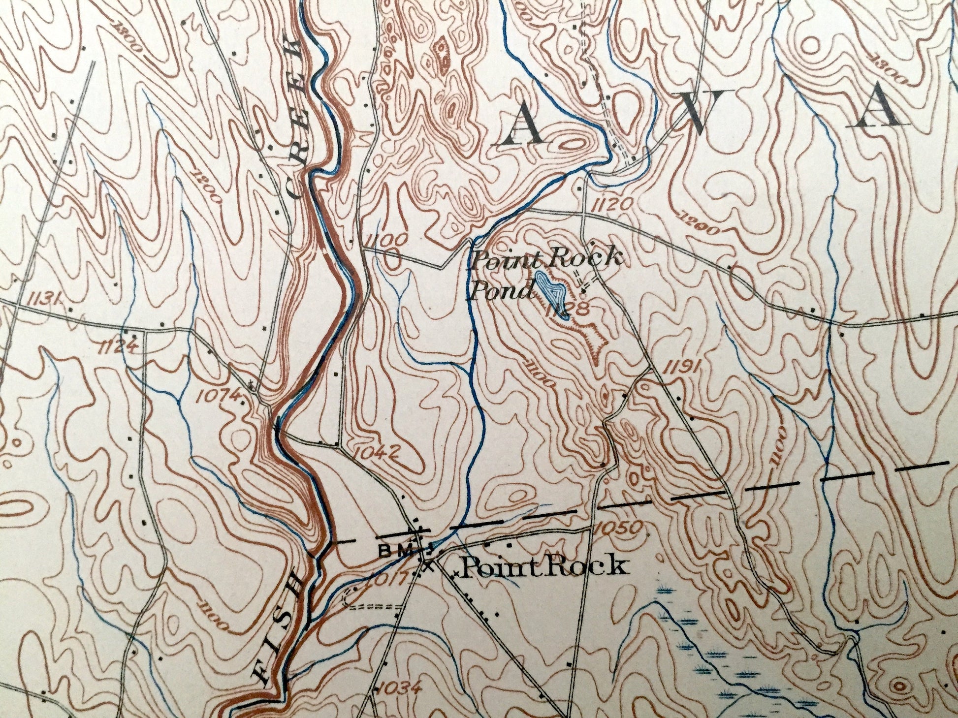 Points of Interest: Oneida County, Lewis County, Fish Creek, Canada Creek, Point Rock Creek, Wickwire Hill, Pond Hill, Little River, Salmon River, Point Rock Pond, Bloodsucker Pond, Mud Pond and more roads, railroads, houses, ponds, hills, creeks, and lakes.