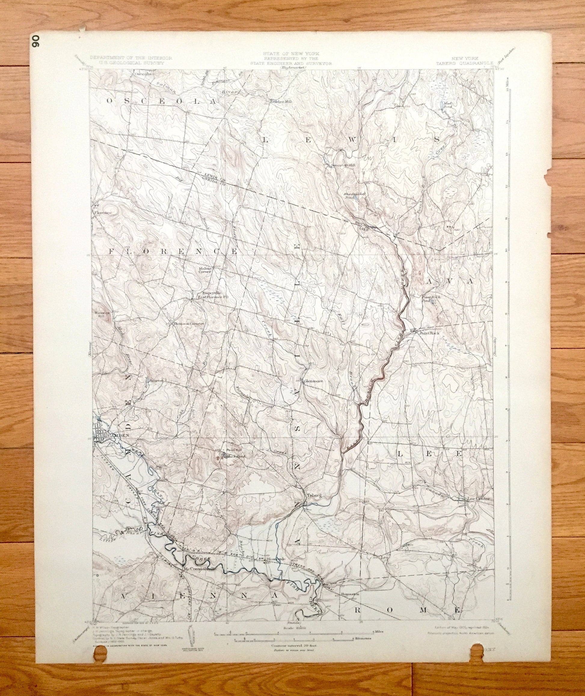 Antique Taberg, New York 1905 US Geological Survey Topographic Map - Annsville, Vienna, Rome, Lee, Ava, Lewis, Florence, Camden, Osceola