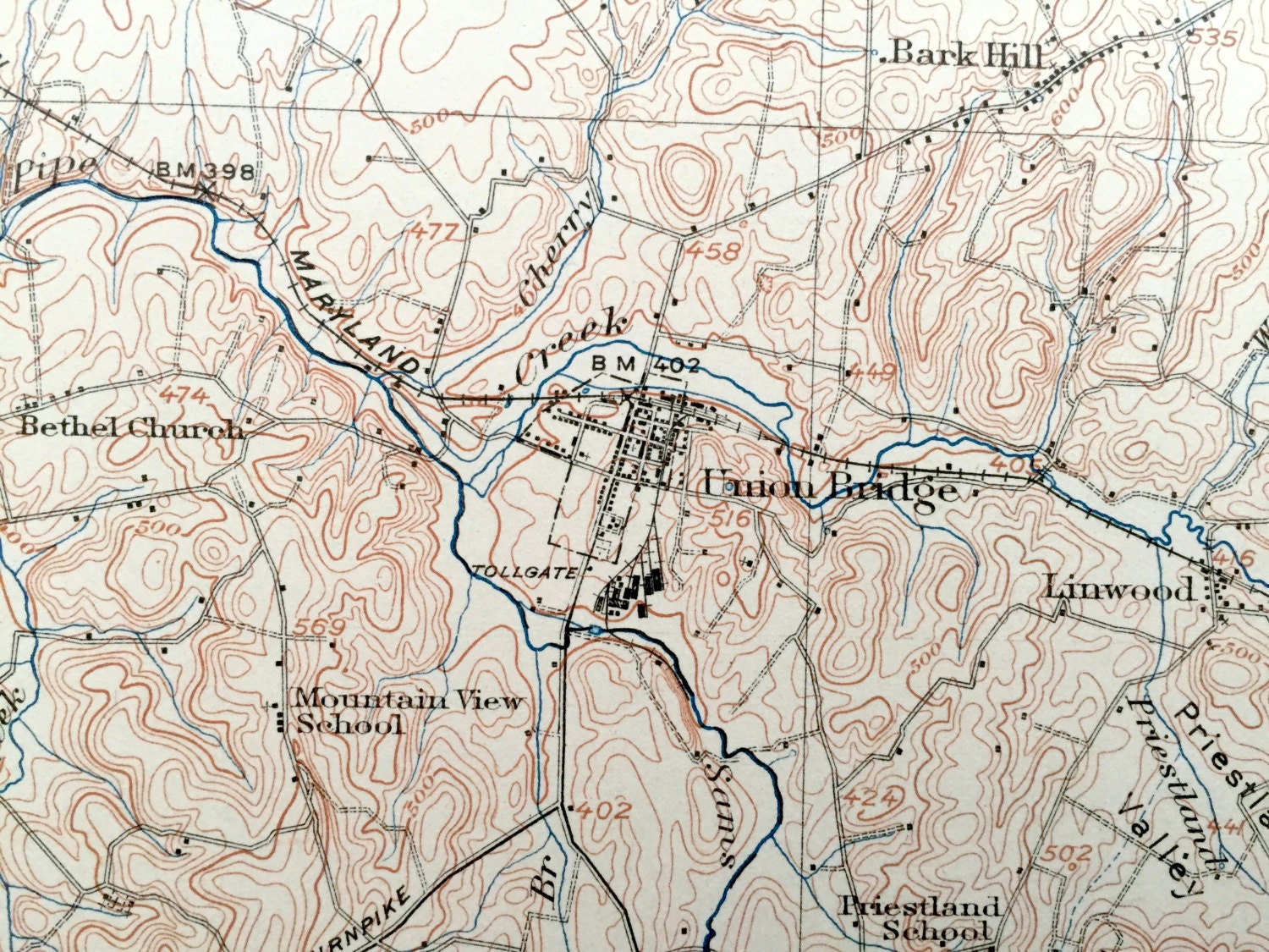 Points of Interest: Carrol County, Frederick County, Adams County, Monocacy River, Parrs Ridge, Northern Central Railroad, Western Maryland Railroad, Pipe Creek, Western Maryland College, New Windsor College, Priestland Valley, and lots more hills, hollows, mountains, creeks, towns, schools, churches, roads and turnpikes.