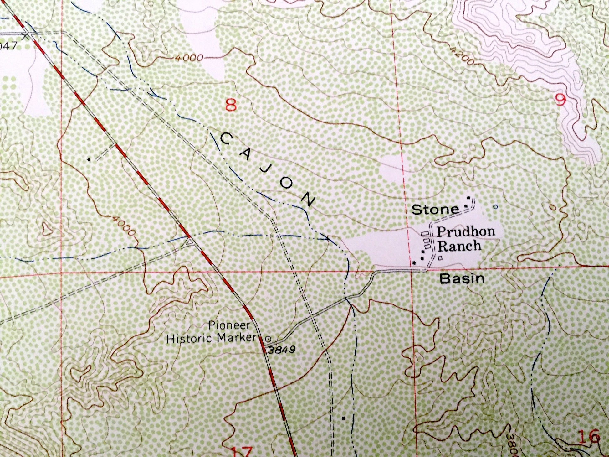 Points of Interest: Telegraph Peak, Angeles National Forest, San Gabriel Mountains, Thunder Mountain, Cucamonga Wild Area, North Fork Lytle Creek, Upper Lytle Creek Ridge, San Bernardino National Forest, Lone Pine Canyon, Sharpless Ranch, Nielson Ranch, Miners Bowl, Cedar Canyon, Mt. Baldy Notch, Devils Backbone, Coldwater Canyon, Stockton Flat, Blue Ridge, Stover Canyon, Circle Mountain, Swarthout Valley, Horse Canyon, Nuss Ranch, Cajon Canyon, Stone Basin, Prudhon Ranch, Pioneer Historic Marker, and lots more hills, mountains, ravines, creeks, houses, canals, roads and camps.