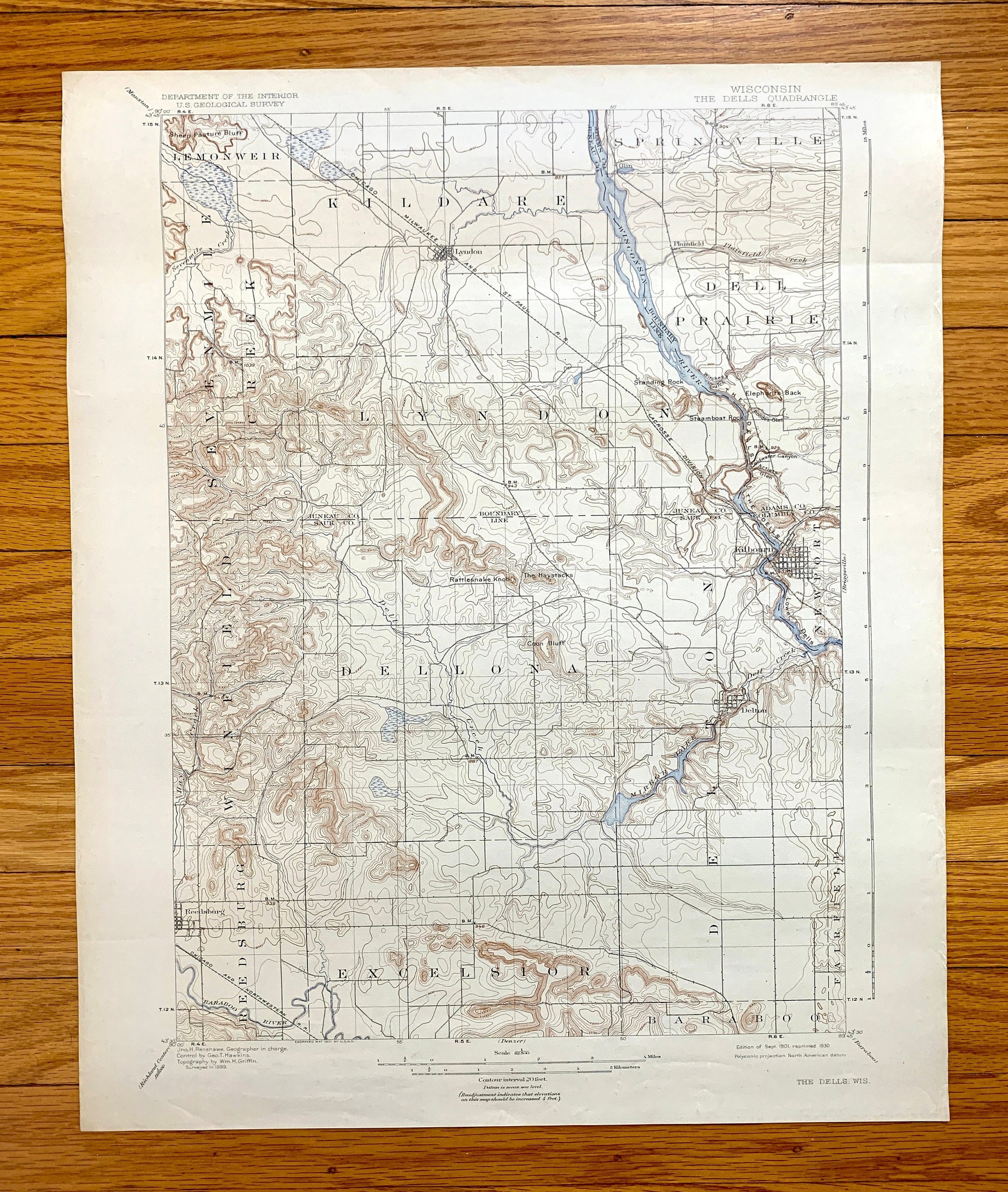 Antique The Dells, Wisconsin 1901 US Geological Survey Topographic Map – Kilbourn, Delton, Lyndon, Reedsburg, Juneau, Sauk, Adams County, WI