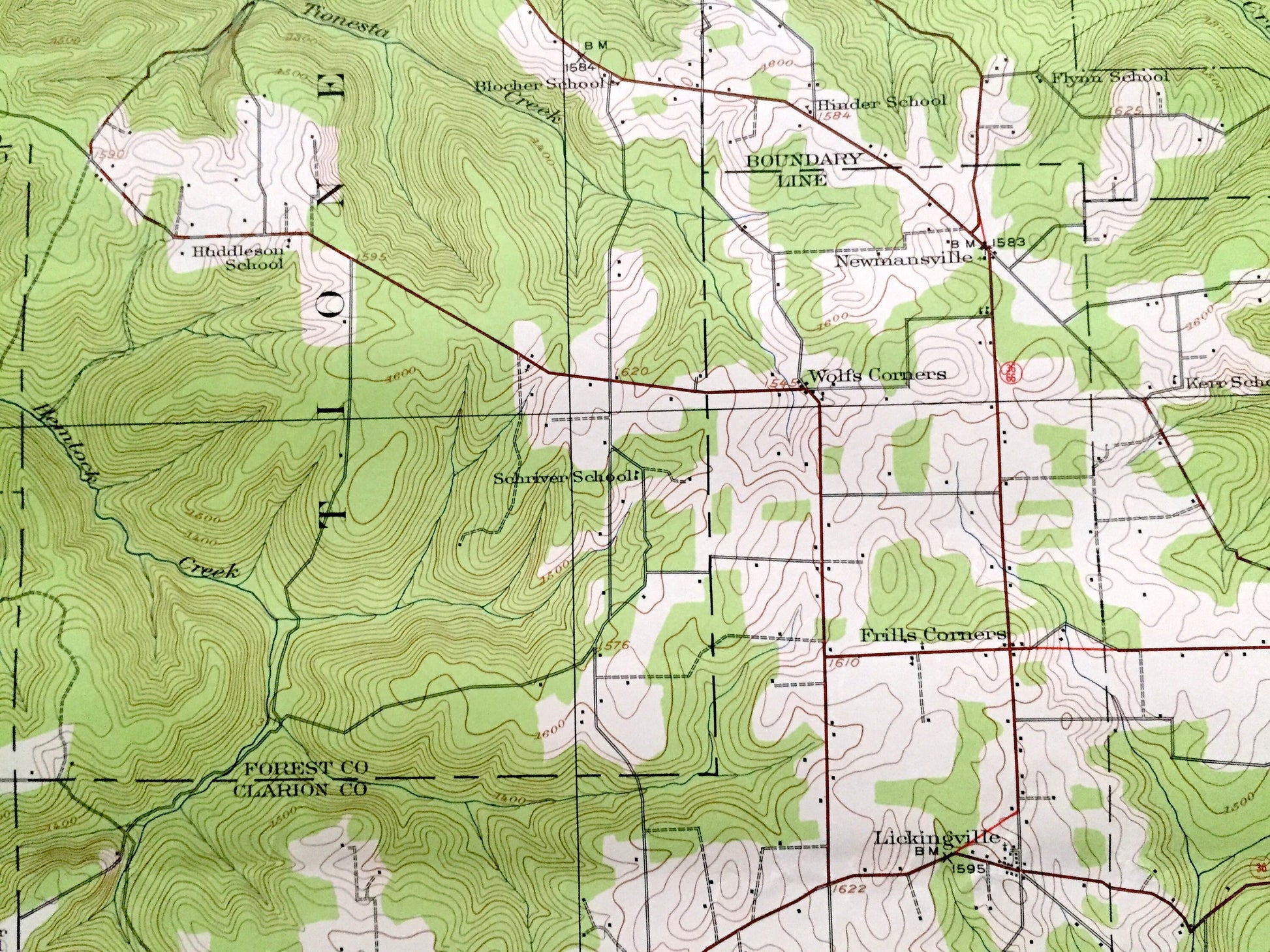 Points of Interest: Forest County, Venango County, Clarion County, Allegheny River, Tionesta Creek, Clarion River, Allegheny National Forest, State Game Preserve, Maxwell Run, Coon Creek, Bull Run, Baltimore & Ohio Railroad, and lots more hills, streams, ponds, schools, houses, railroad and roads.