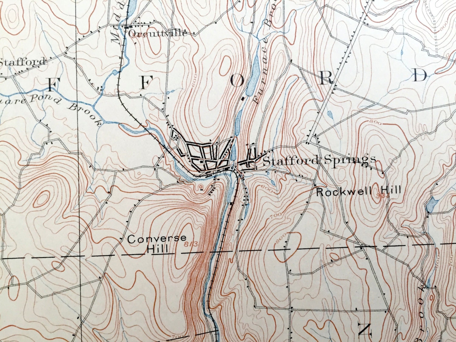 See what Coventry, Rockville, Ellington, Somers, Stafford Springs and Tolland looked like 130 years ago. Lots of intricate details and geological contours. Map even has little squares for every house that existed at the time. The cartographers were very thorough back then! On the back is a description of topographic symbols and map guide.
