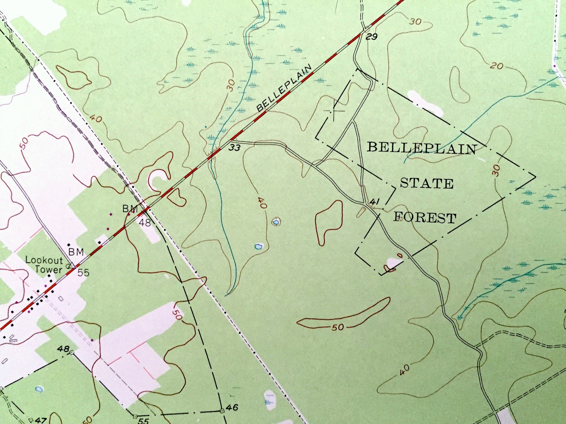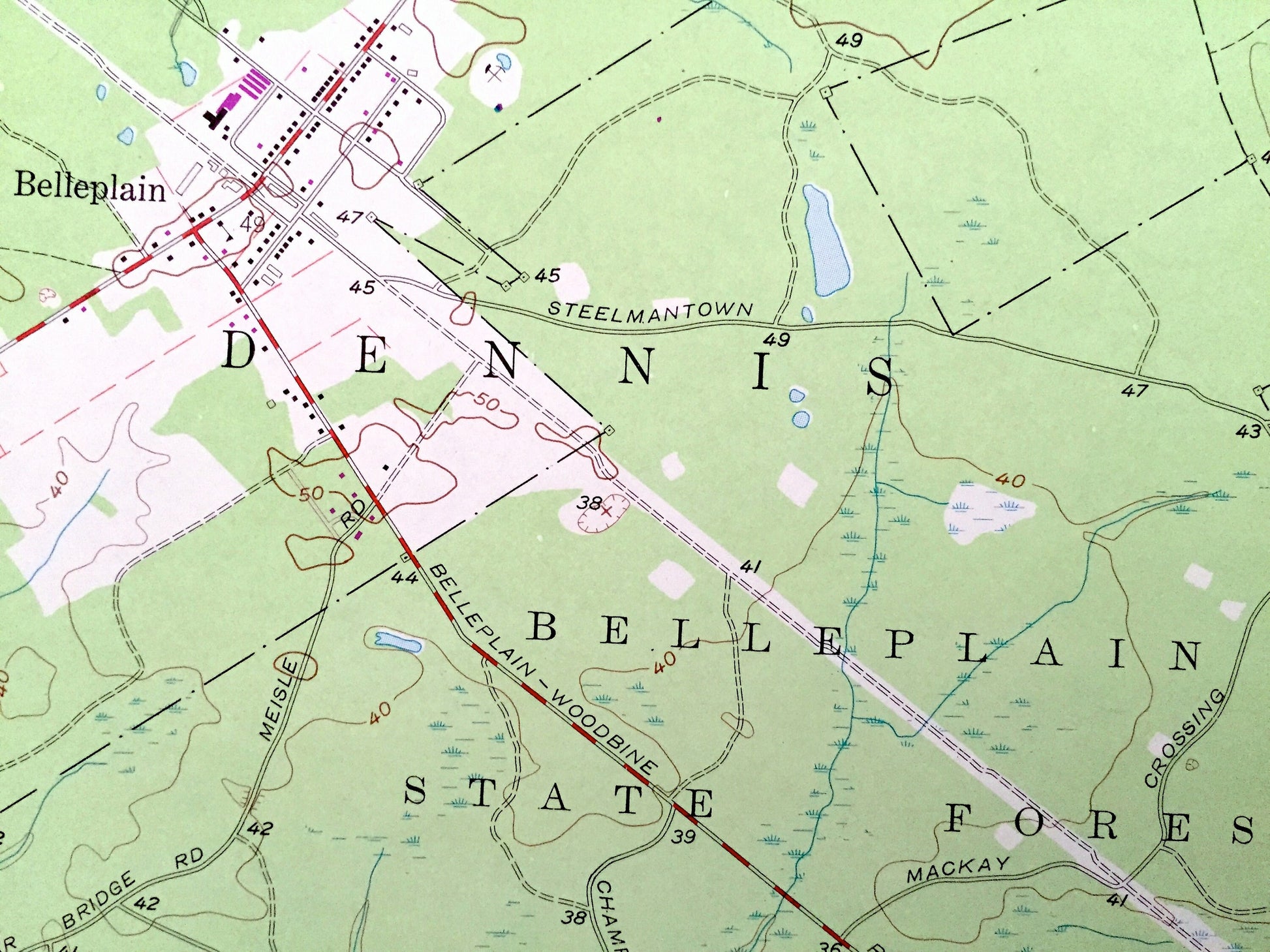 Points of Interest: Belleplain State Forest, Atlantic County, Upper Township, State Fishing and Hunting Grounds, Sharps Branch, Green Branch, Tuckahoe River, McNeals Branch, Tarkiln Brook, Mill Creek, Back Run, Warners Mill Stream, Peters Creek, Gibson Creek, Cranberry Bogs, Cemetery, and many more hills, streams, ponds, houses, schools, railroads, churches and roads.