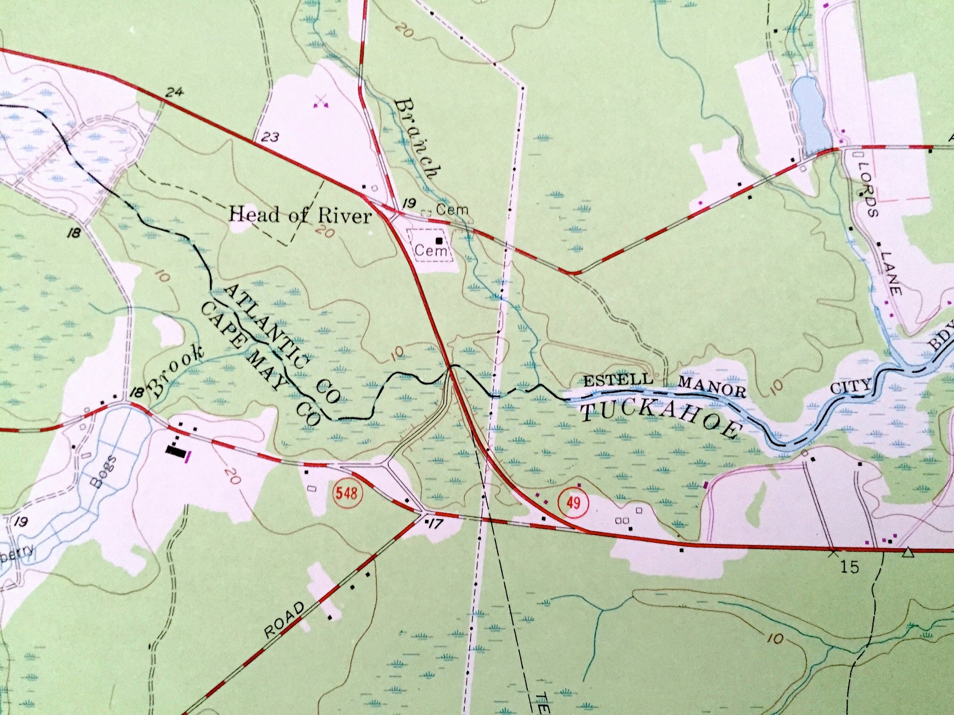 Beautiful, antique map of Tuckahoe, New Jersey and surrounding Cape May, Atlantic, and Cumberland County areas. This is an authentic 1956 edition, 1979 print from the U.S. Geological Survey and NOT a computer reproduction.