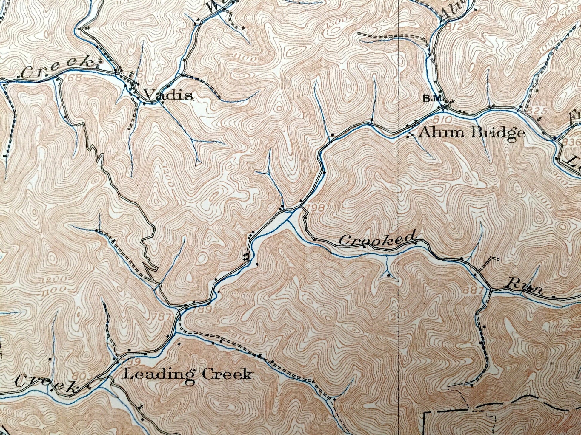 Beautiful, antique map of Vadis, West Virginia and surrounding Lewis, Gilmer, Doddridge, and Harrison County area. This is an authentic 1904 print from the U.S. Geological Survey and NOT a computer reproduction.