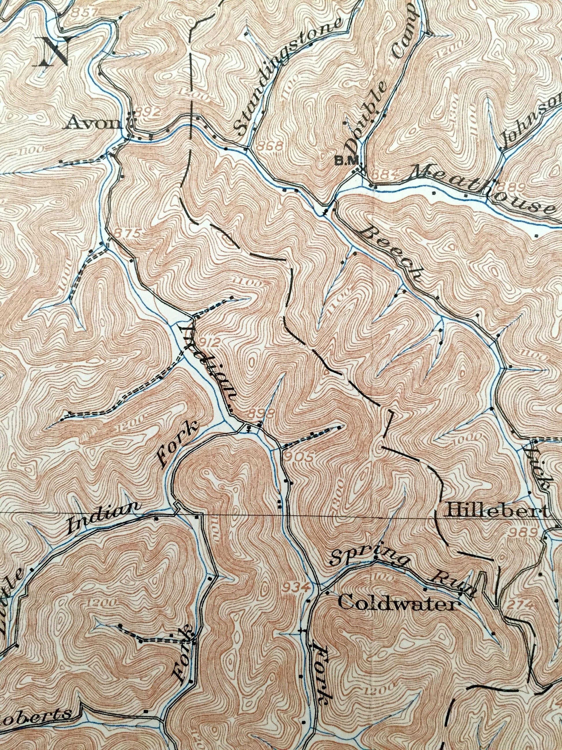 Points of Interest: Fink Creek, Sugarloaf, Kiger Camp, Hog Camp, Jacks Hollow, and lots more hills, mountains, creeks, towns, roads and train tracks.