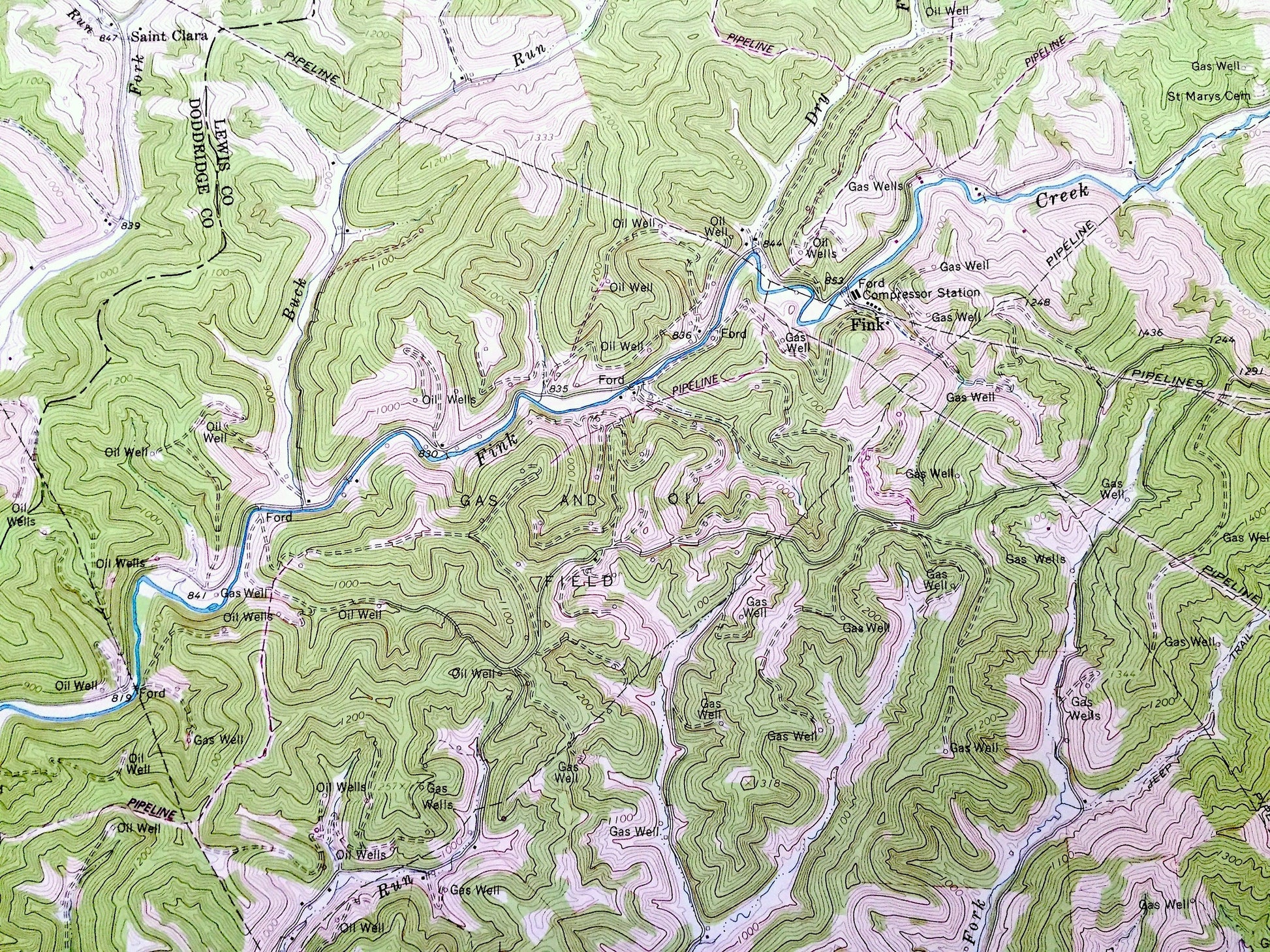 Points of Interest: Glimer County, Lewis County, Doddridge County, Leading Creek, Fink Creek, Crooked Run, Alum Fork, Butcher Fork, Walnut Fork, Little Cove Creek, Fallen Run, Fallen Timber Run, Sycamore Fork, Buck Run, Dry Fork, Philips Fork, and lots more hills, mountains, creeks, towns, roads and train tracks.