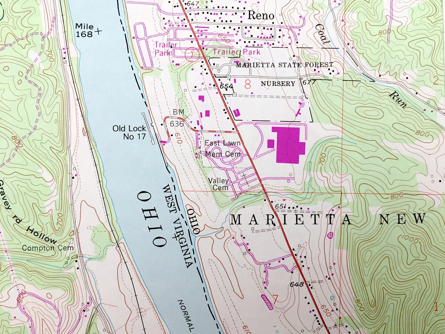 See what Wood County of West Virginia and Washington County of Ohio looked like 60 years ago. Lots of intricate details and geological contours. Map even has little squares for every house that existed at the time. The USGS cartographers were very thorough back then!