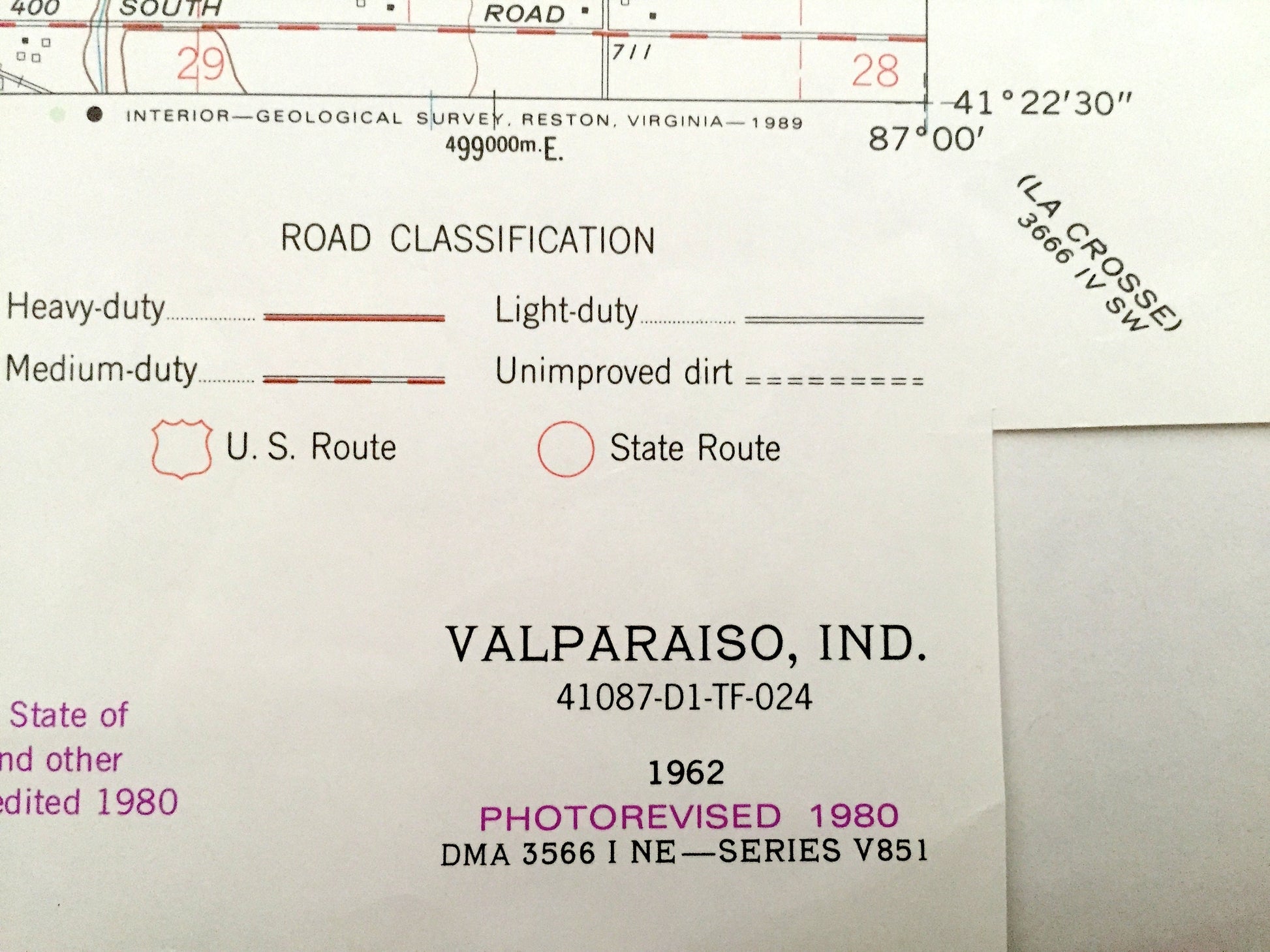 Beautiful, antique map of Valparaiso, Indiana and surrounding Porter County area. This is an authentic 1962 edition, 1980 print from the U.S. Geological Survey and NOT a computer reproduction.