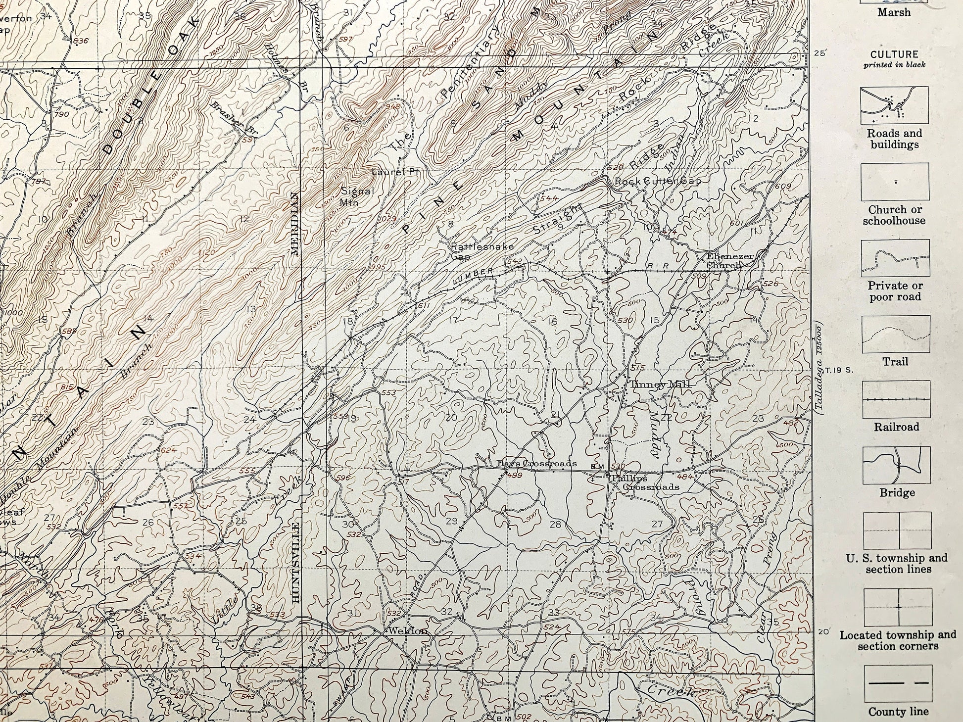 See what Alabama looked like 115 years ago. Lots of intricate details and geological contours. Map even has little squares for every house that existed at the time. The USGS cartographers were very thorough back then! This is one of the rare maps where the topographic symbols and map guide are on the front.